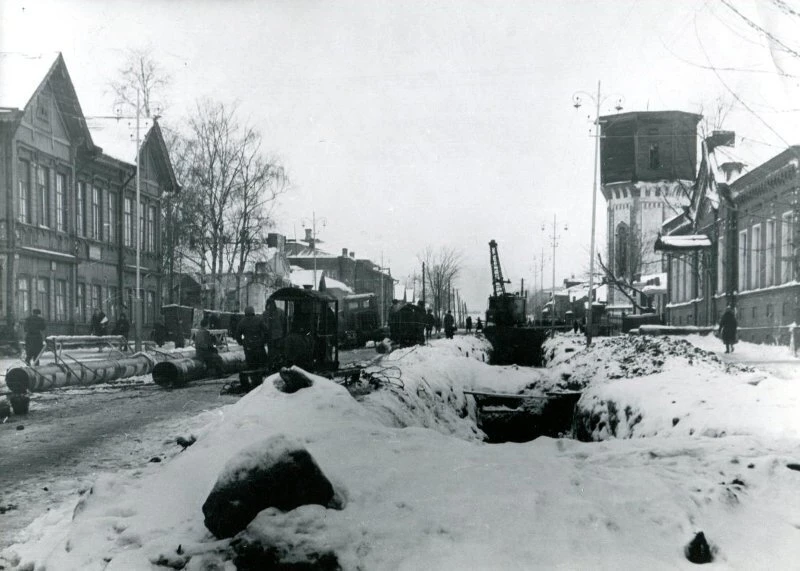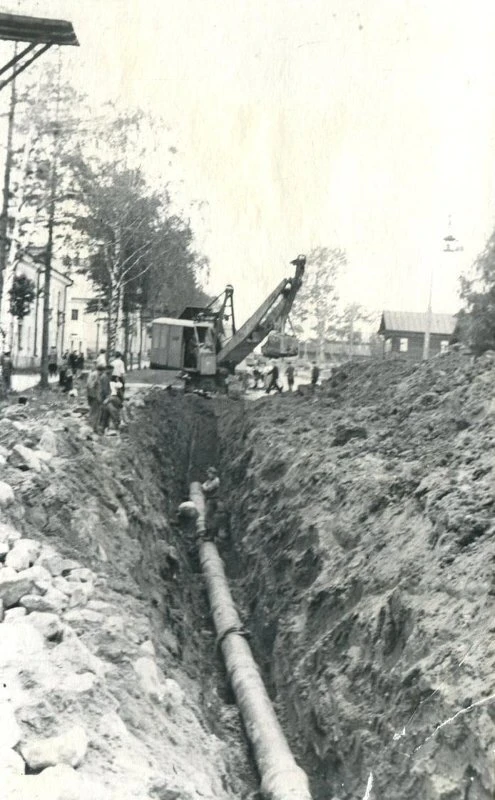 Прокладка новых водопроводных труб к водонапорной башне на улице Ленина