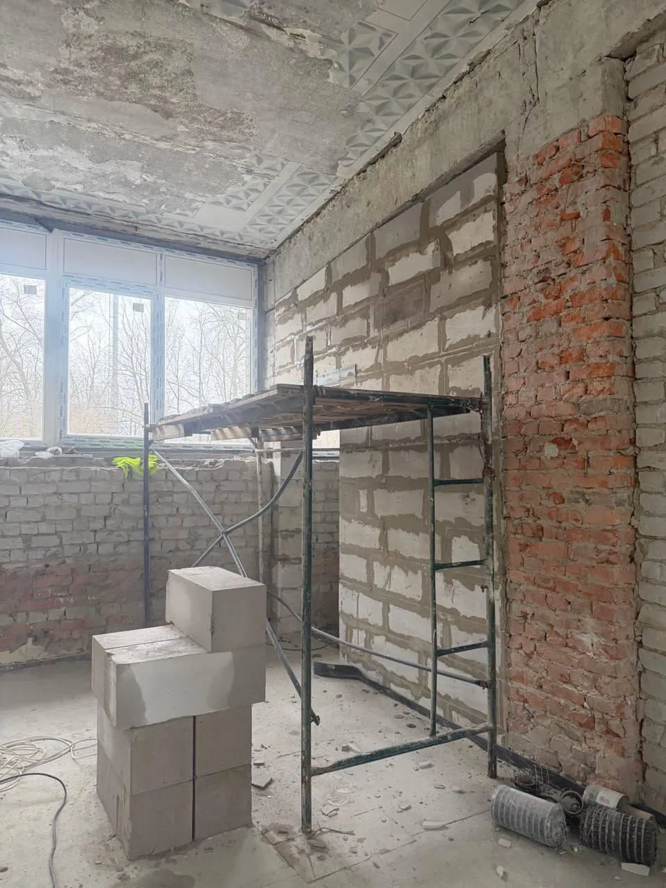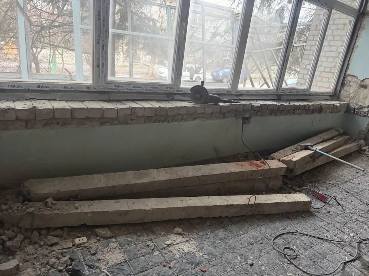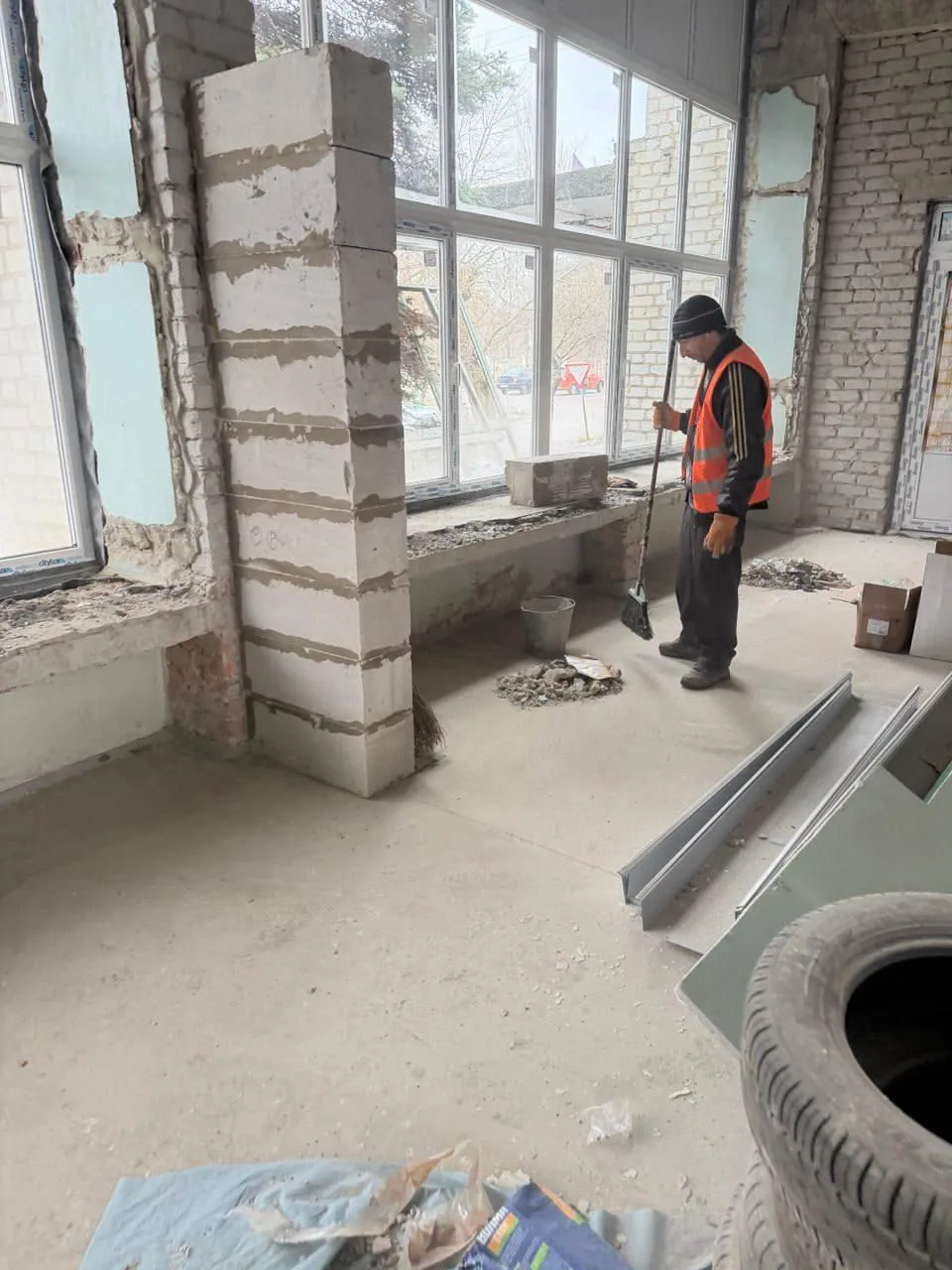 В отделении почты поселка Новый Свет после установки окон и закрытия теплого контура здания специалисты демонтировали старые массивные подоконники и построили новые межкомнатные перегородки.