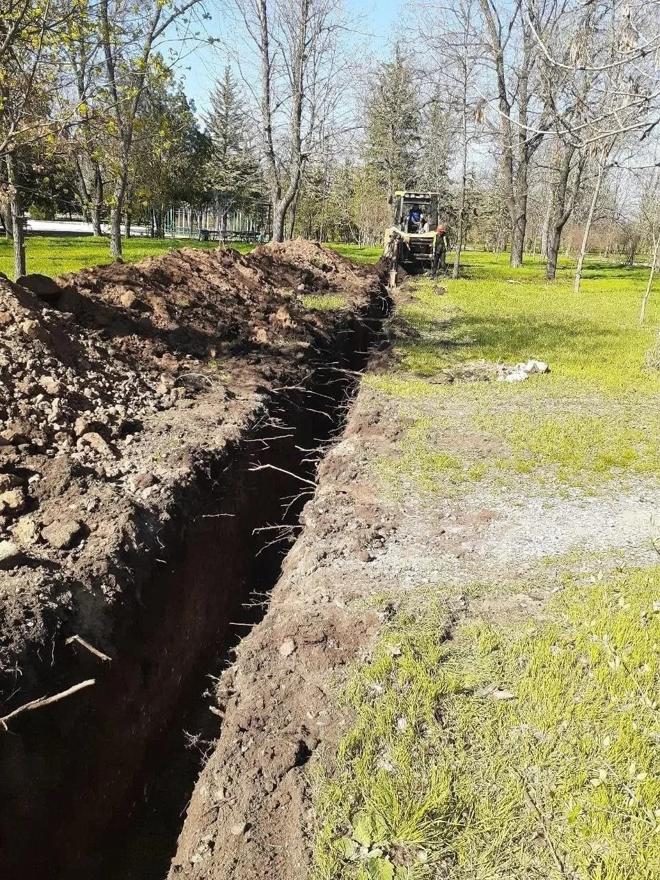 Рабочие выполняют рытье траншей, укладку новых труб, устойчивых к коррозии, монтаж современной арматуры для перекрытия потоков воды и установку железобетонных водопроводных колодцев.
