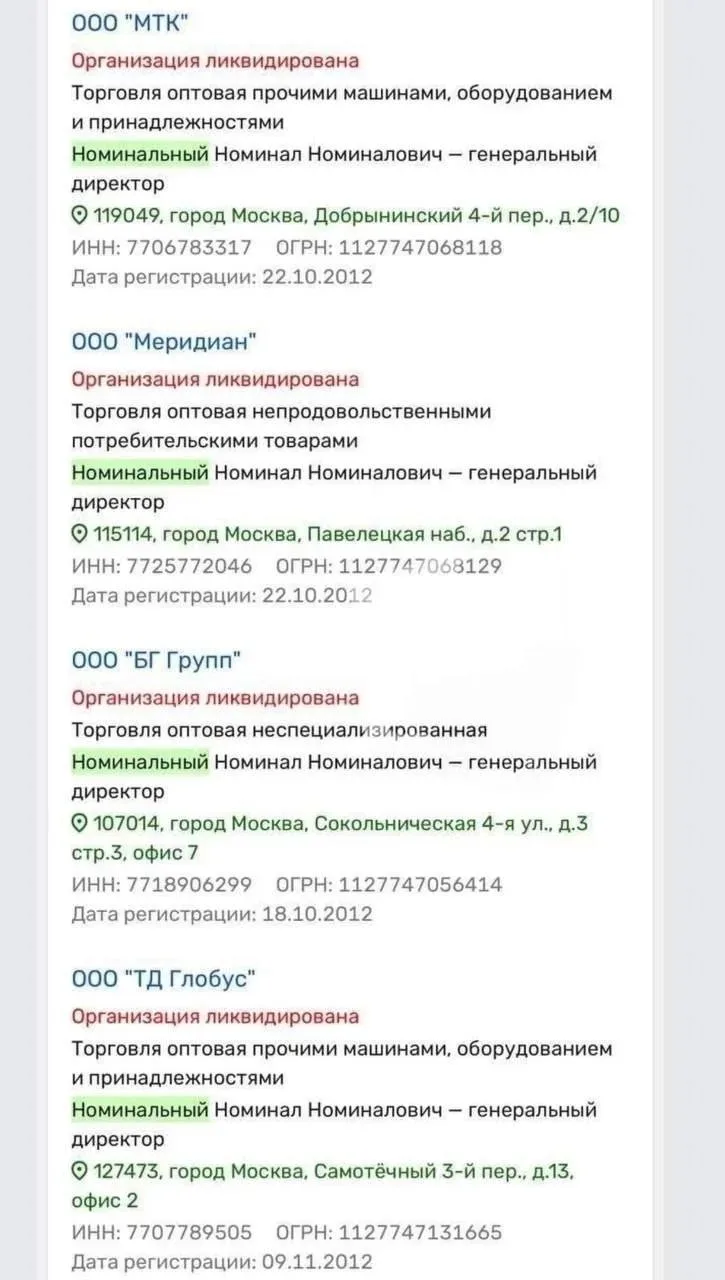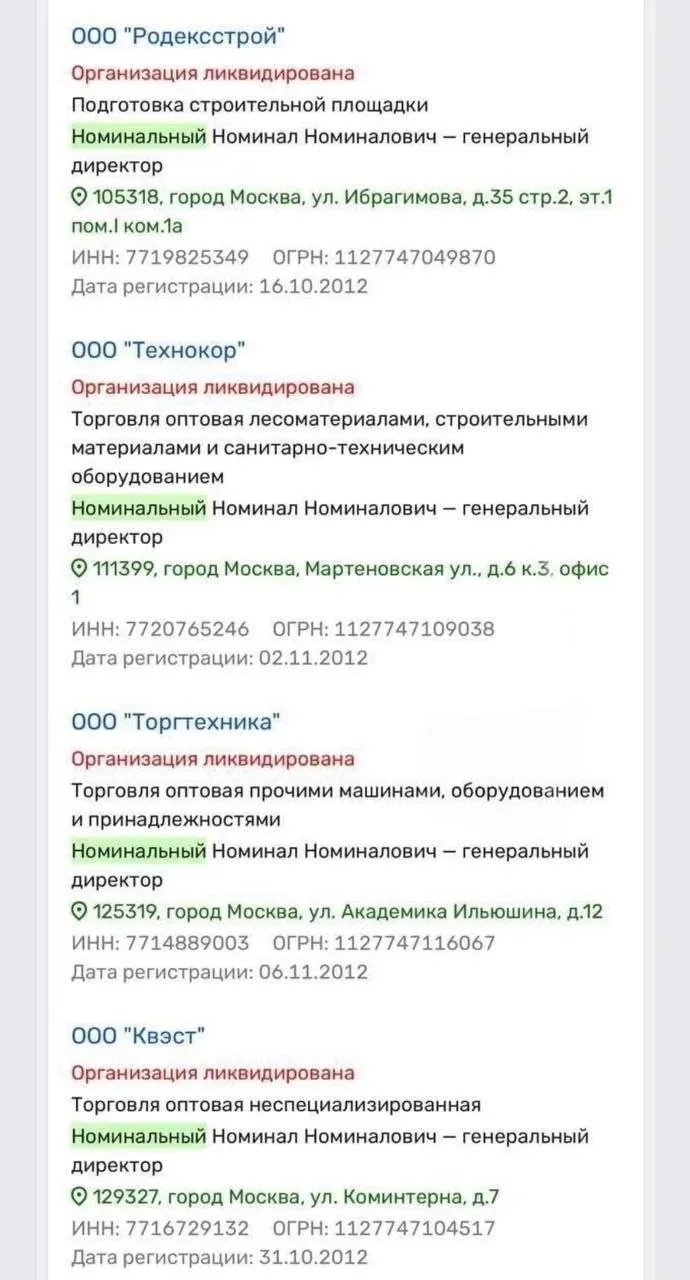 ⚡️В России ликвидировали 16 компаний, где директором числился Номинальный Номинал Номиналович.