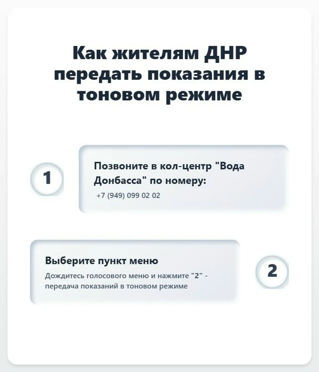 Предприятие «Вода Донбасса» внедрило автоматизированный сервис для передачи показаний водомеров через телефон. Теперь абоненты могут отправлять данные без ожидания соединения с оператором, используя клавиатуру мобильного устройства.