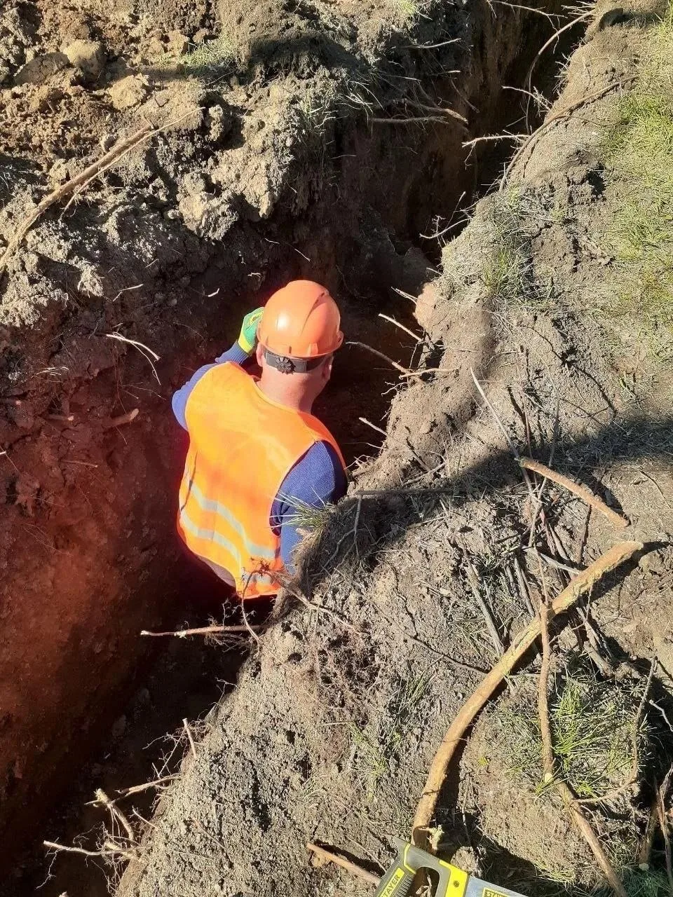 Также продолжается второй этап капремонта водовода от ВНС: строители разрабатывают грунт и производят устройство закрытого подземного перехода методом горизонтально‑направленного бурения.