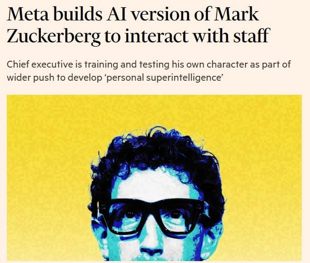 ⚡️Марк Цукерберг создает ИИ-версию себя, — Financial Times.