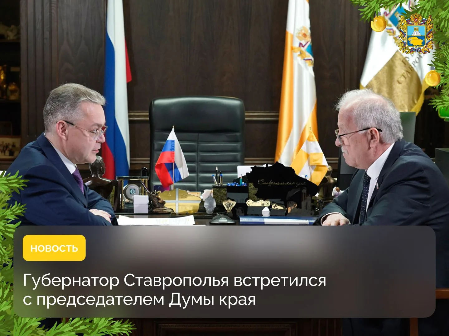 🤝 Глава региона Владимир Владимиров провел рабочую встречу с председателем Думы Ставрополья Николаем Великданем