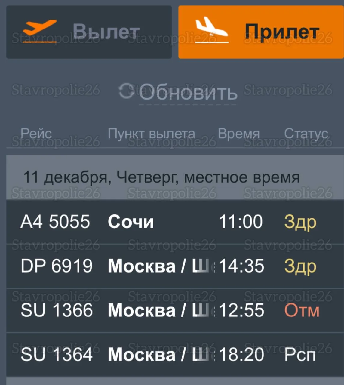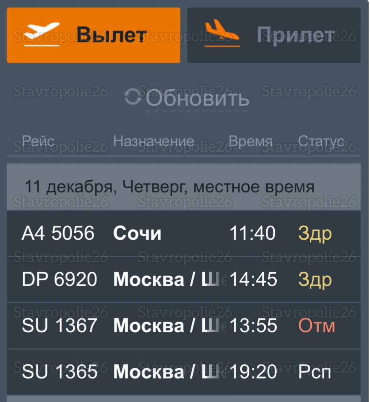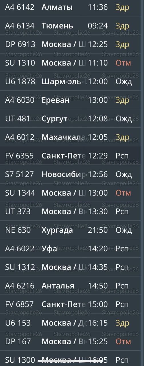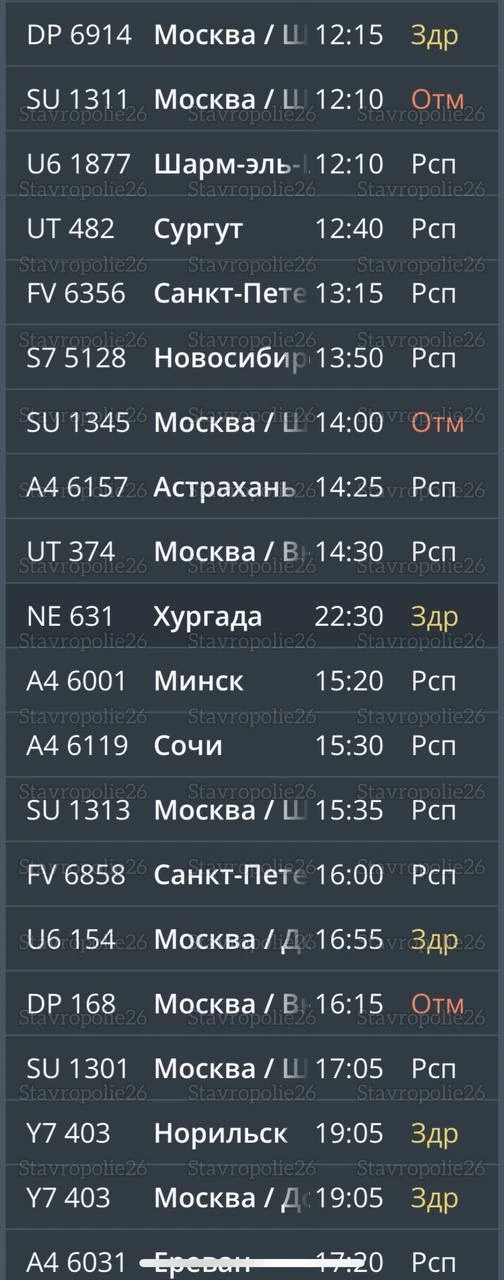 ✈️ В аэропортах Ставропольского края наблюдаются задержки и отмены рейсов.