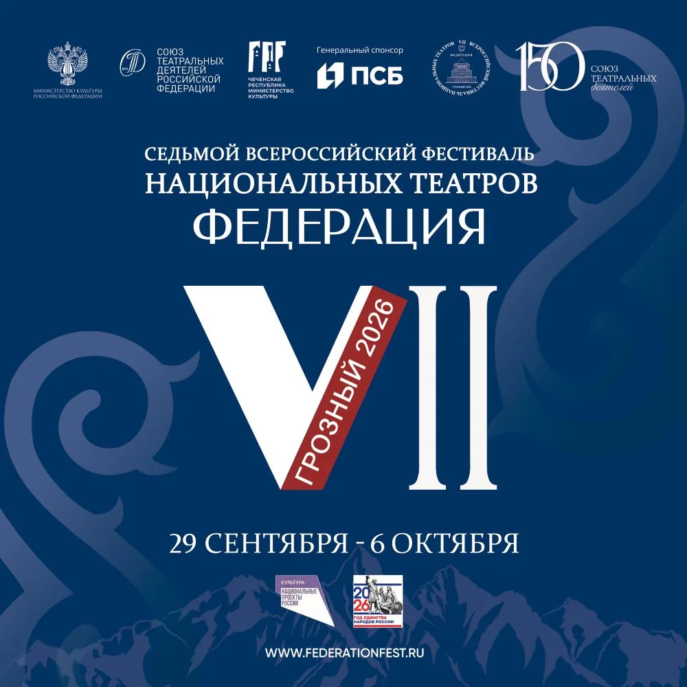 С 29 сентября по 6 октября 2026 года в городе Грозном состоится VII Всероссийский фестиваль национальных театров «Федерация». 2026 год объявлен Годом единства народов России, и осенью столица Чеченской Республики будет вновь гостеприимно принимать большую разноязычную театральную семью России.