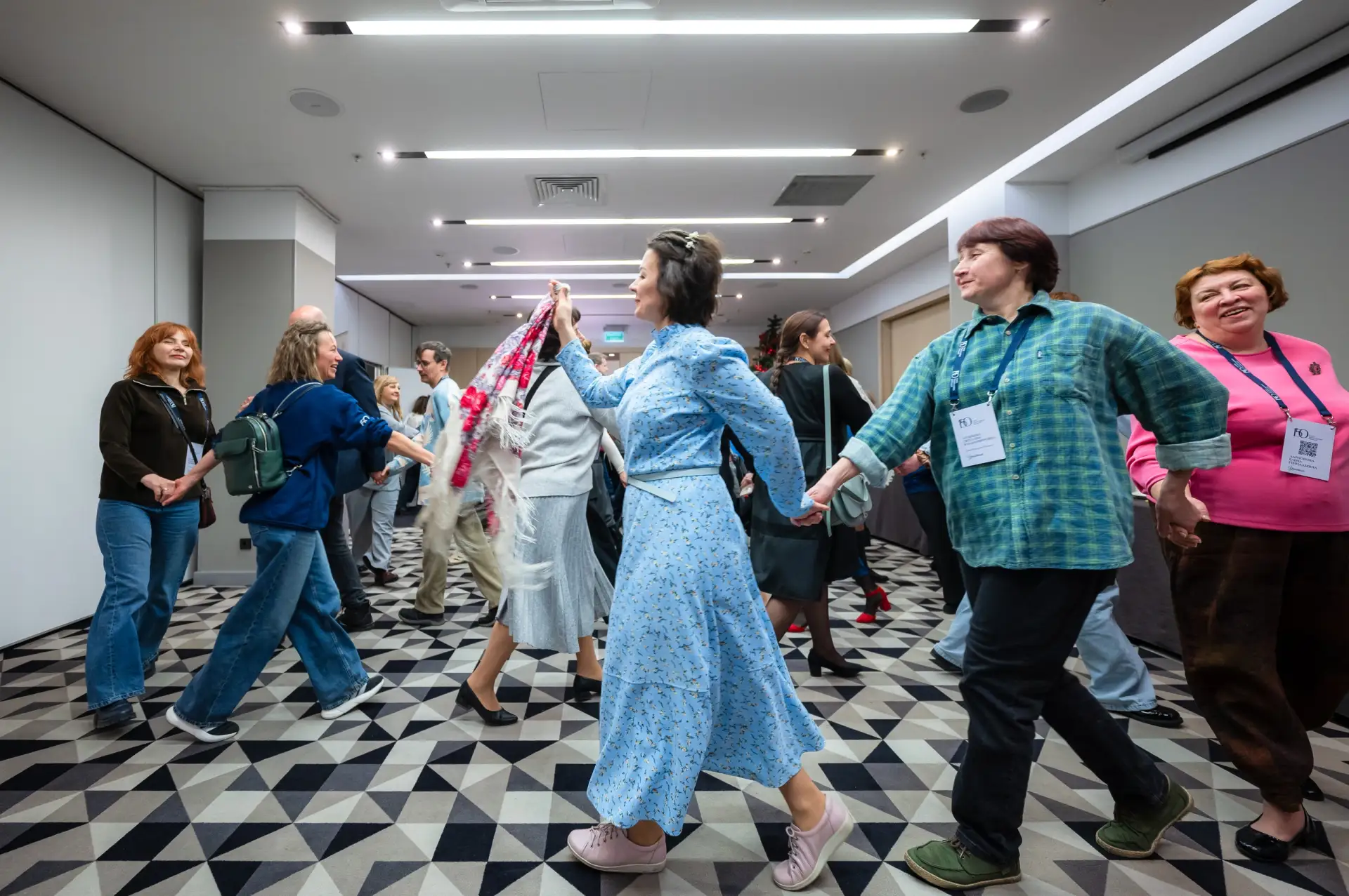 Минутки веселья во время перерывов между работой создавали особую творческую атмосферу — например, авторский мастер-класс по хороводам.