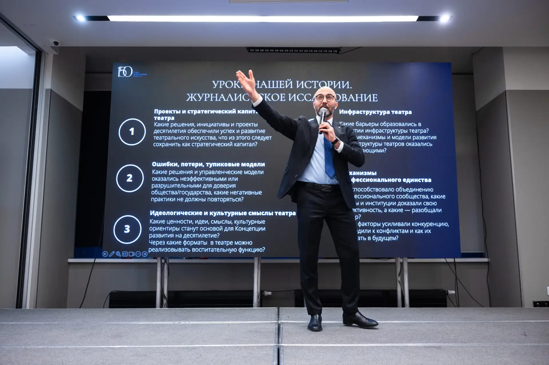 Это пятый из серии форумов, организованных Союзом театральных деятелей России. Их цель— разработка Концепции развития театра в России на период до 2035 года.