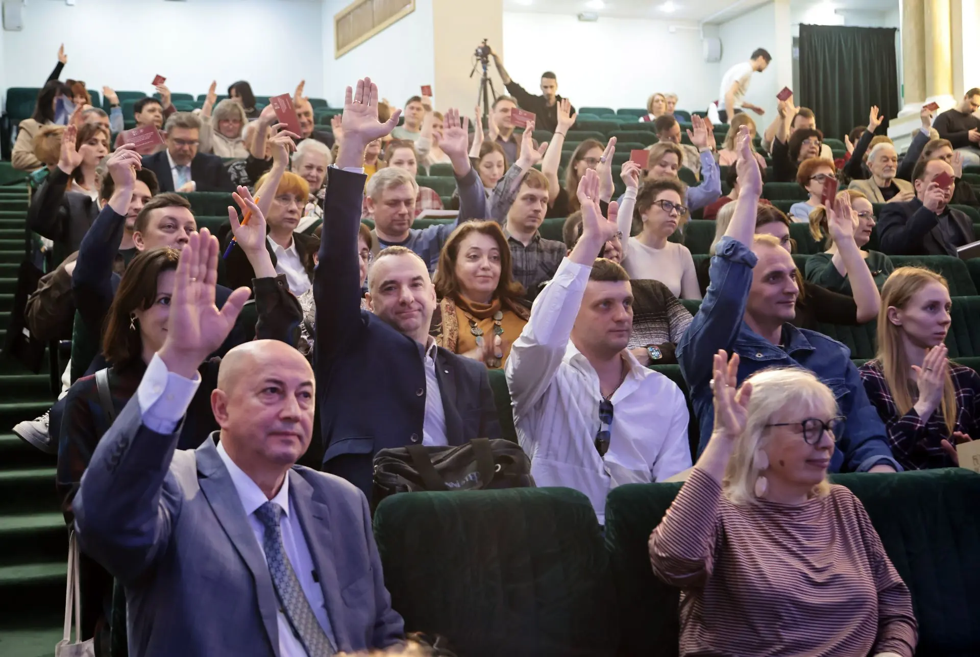 «Пользуясь каждой минутой, напоминаю, что это Общество взаимного вспоможения — мы друг без друга никуда. Этот год для Союза театральных деятелей особенный — мы празднуем 150-летний юбилей. По всей России пройдут более двух тысяч мероприятий. Но, конечно, самые крупные и знаковые из них состоятся в Москве. И поэтому я призываю вас принять в них самое активное участие. В июне на Киевском вокзале встречаем два Театральных поезда — один прибудет из Владивостока, а другой из Севастополя. Это 44 города, 5 тысяч артистов. Мы их встретим, и дальше начнется наш замечательный „Театральный бульвар“, в котором примут участие региональные театры, а основой станете вы — московские театры, абсолютные лидеры театрального искусства».
