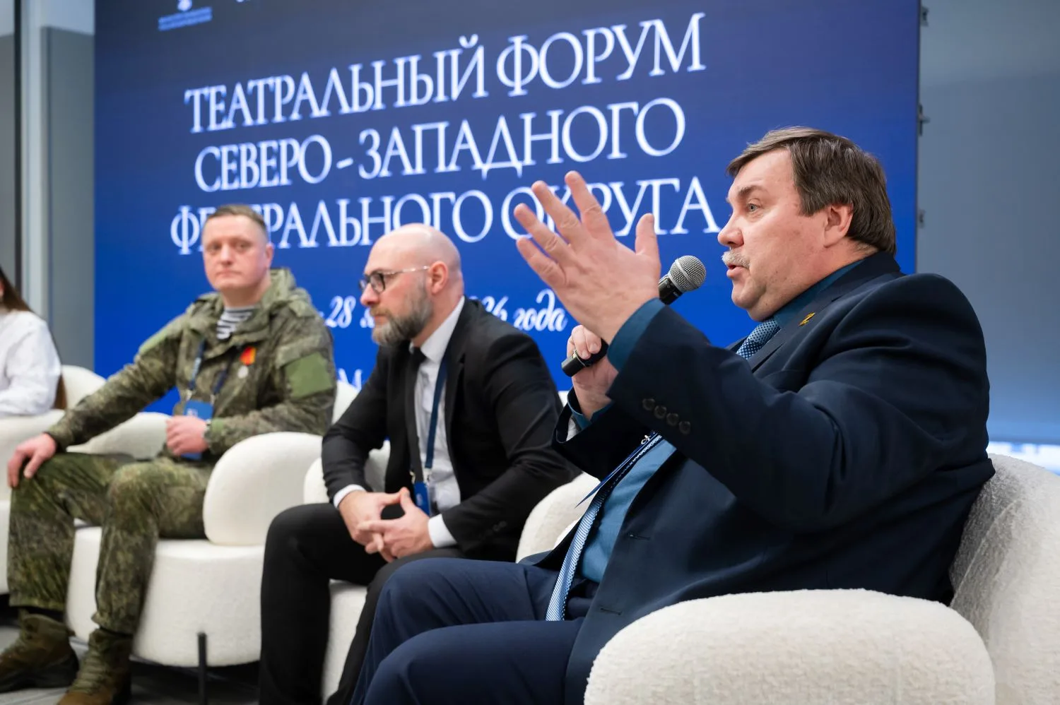 «Южный федеральный округ — особый для нашей страны. В последние годы в его состав вошли стратегически важные территории России: Крым и Севастополь. У театрального сообщества исторических регионов сейчас свой путь — свои особенности развития и серьезные вызовы. Для них запланирован отдельный форум, который пройдет в Судаке. В Сочи мы встречаемся с представителями Астраханской области, Волгоградской, Ростовской, республик Адыгея и Калмыкия, Краснодарского края. Почти 50 театров, многие из которых с легендарной историей и традицией. Уверен, всех участников ждет слаженная и интересная работа, результат которой станет частью Концепции развития театра до 2035 года».