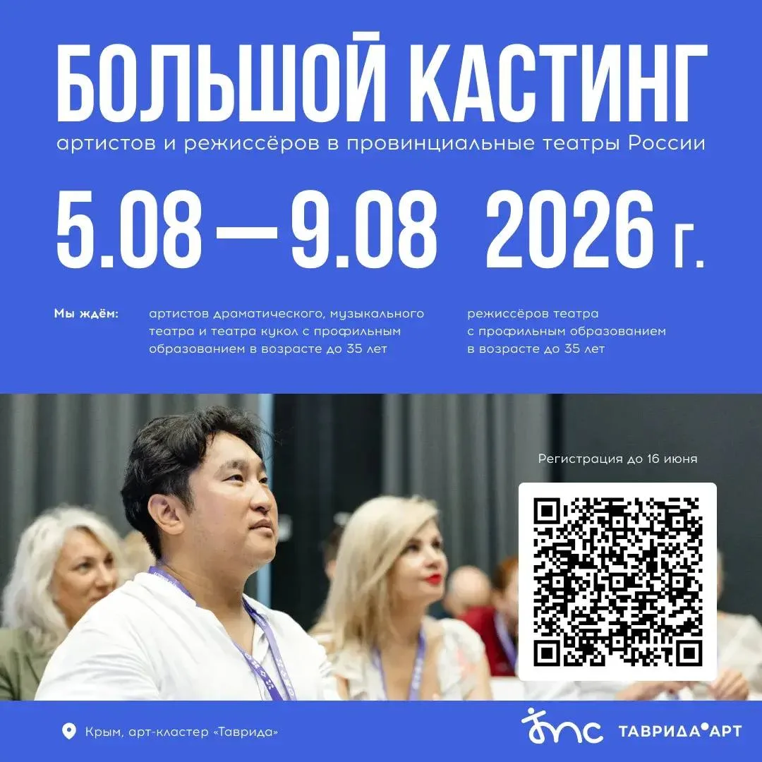 Отдельно отметим, что в 2026 году своё 150-летие отмечает Союз театральных деятелей России — сообщество, которое продолжает развивать театральное искусство в стране. А с 1 по 7 июля на площадке Тавриды пройдёт летняя школа, посвящённая 150-летию Союза театральных деятелей России. Зарегистрироваться можно по ссылке!