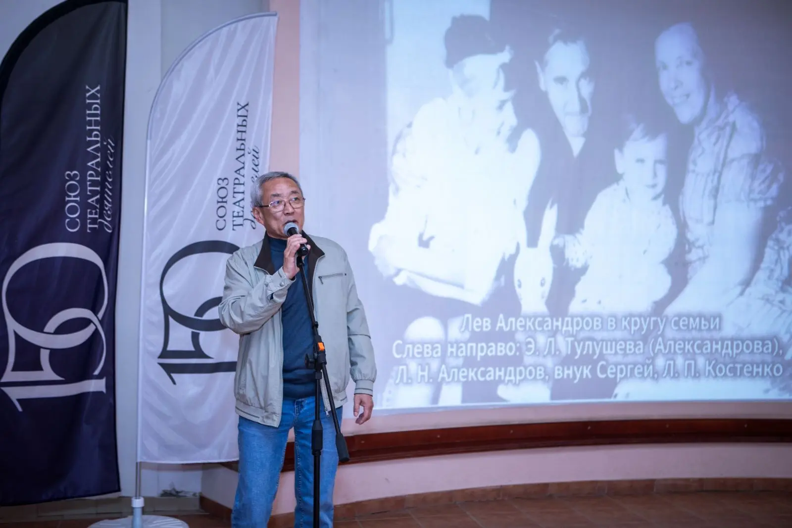 Белое покрывало со стелы торжественно сняли ветераны СТД РФ — заслуженный артист РСФСР Юрий Ильянов и заслуженный артист РФ Александр Щеглов. Из Санкт-Петербурга специально приехал внук режиссера — Сергей Александров. После возложения цветов и памятных слов мероприятие продолжилось в фойе Национального драматического театра им. Б. Басангова, где состоялся вечер памяти.