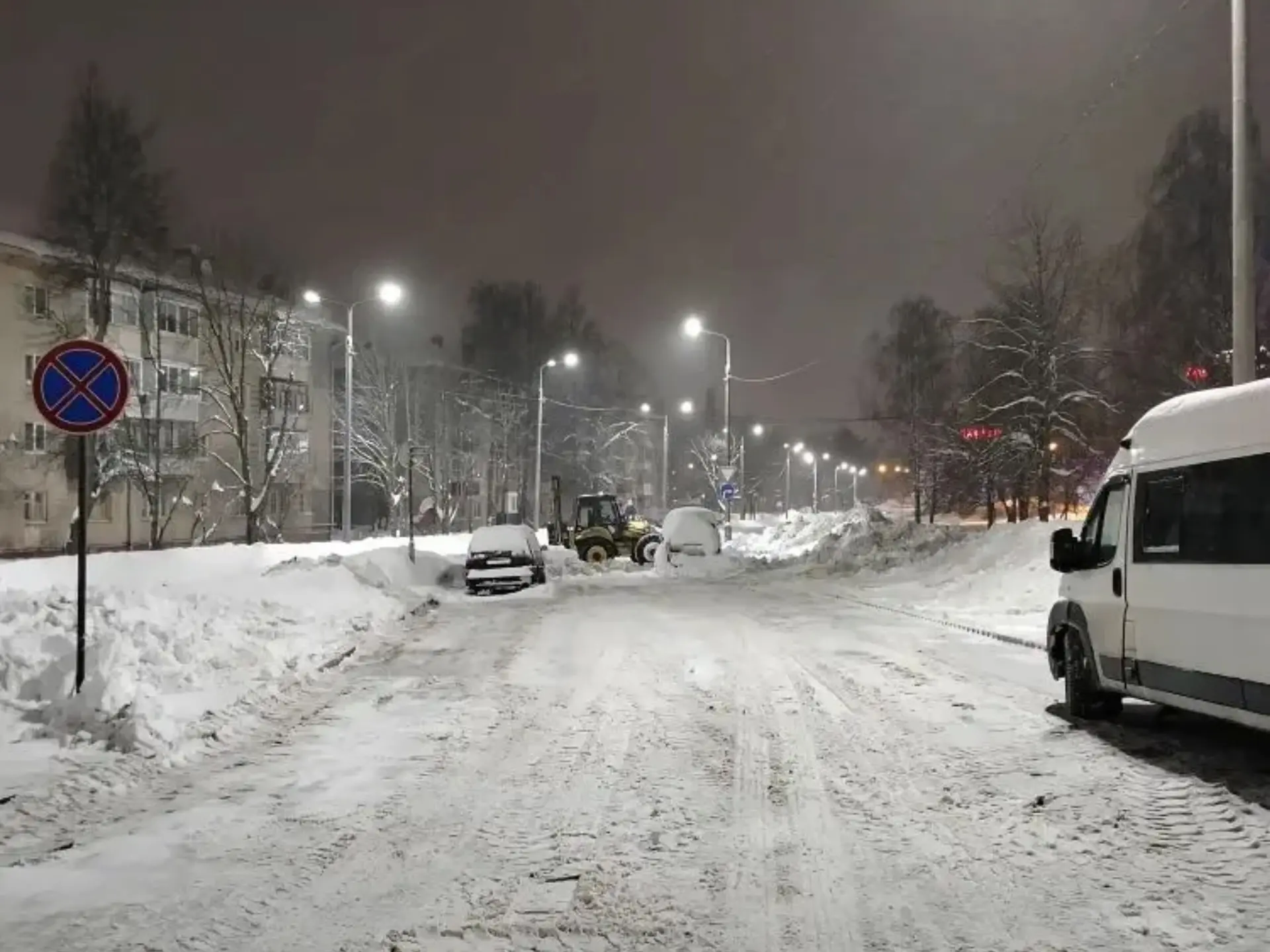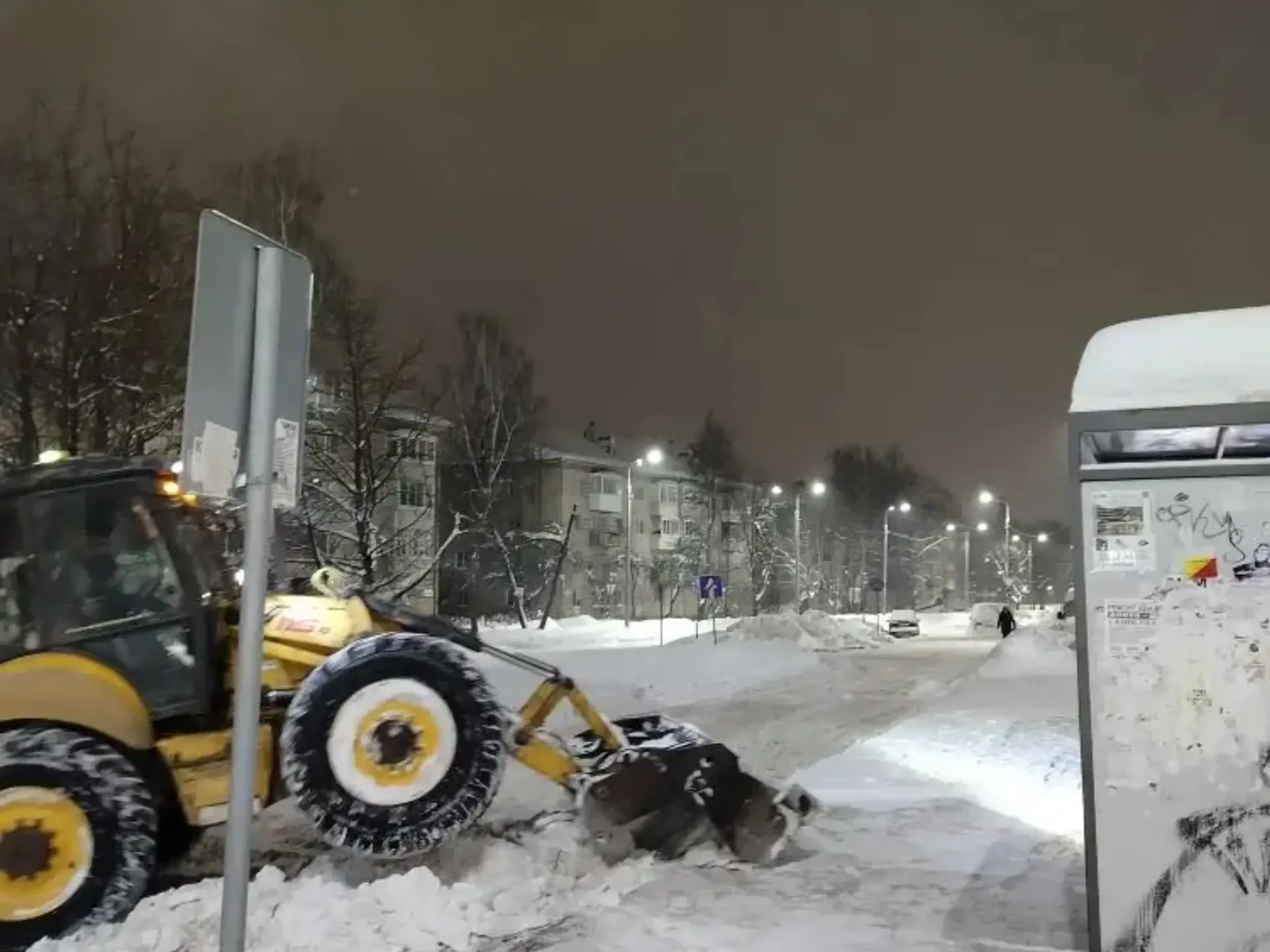 Снова снег. Техника в городе с обеда. Работу не останавливаем и уходим в ночь.