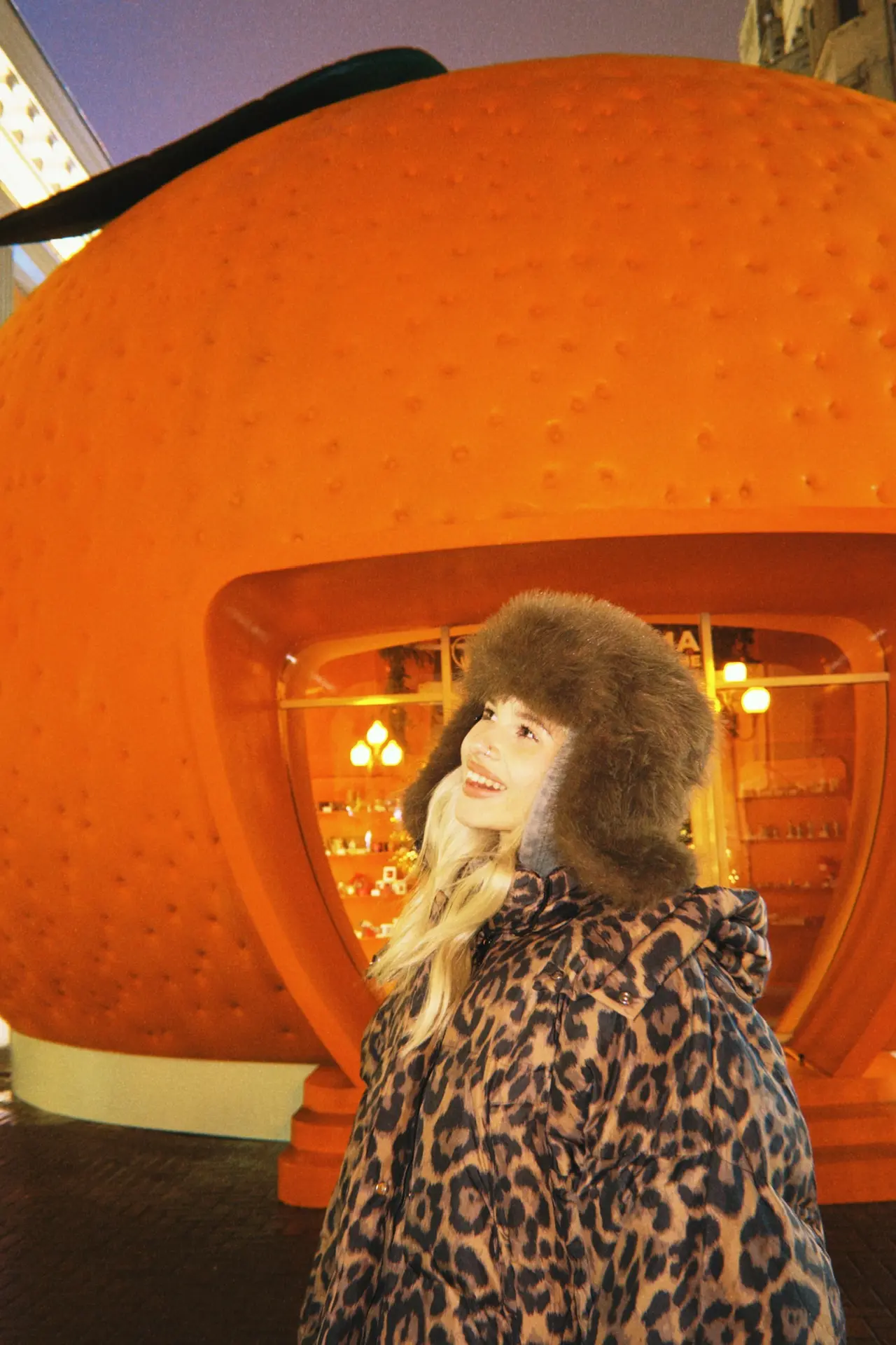 она осталась в кафешке ,а я быстренько побежала снять видео в мандаринке ,а то долго ехали и закроется она 😢