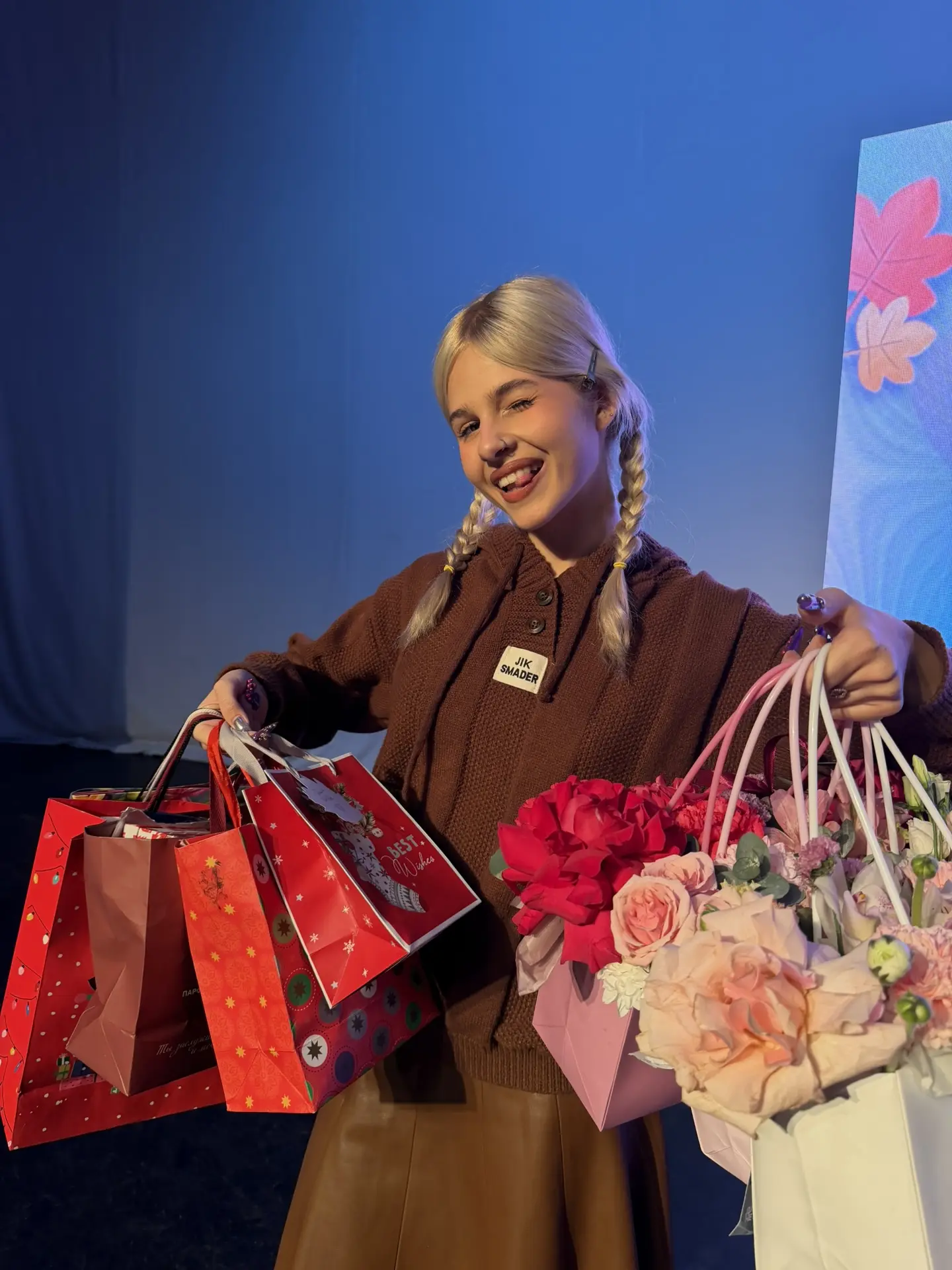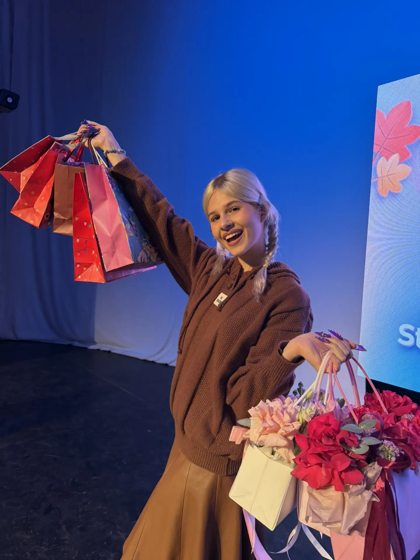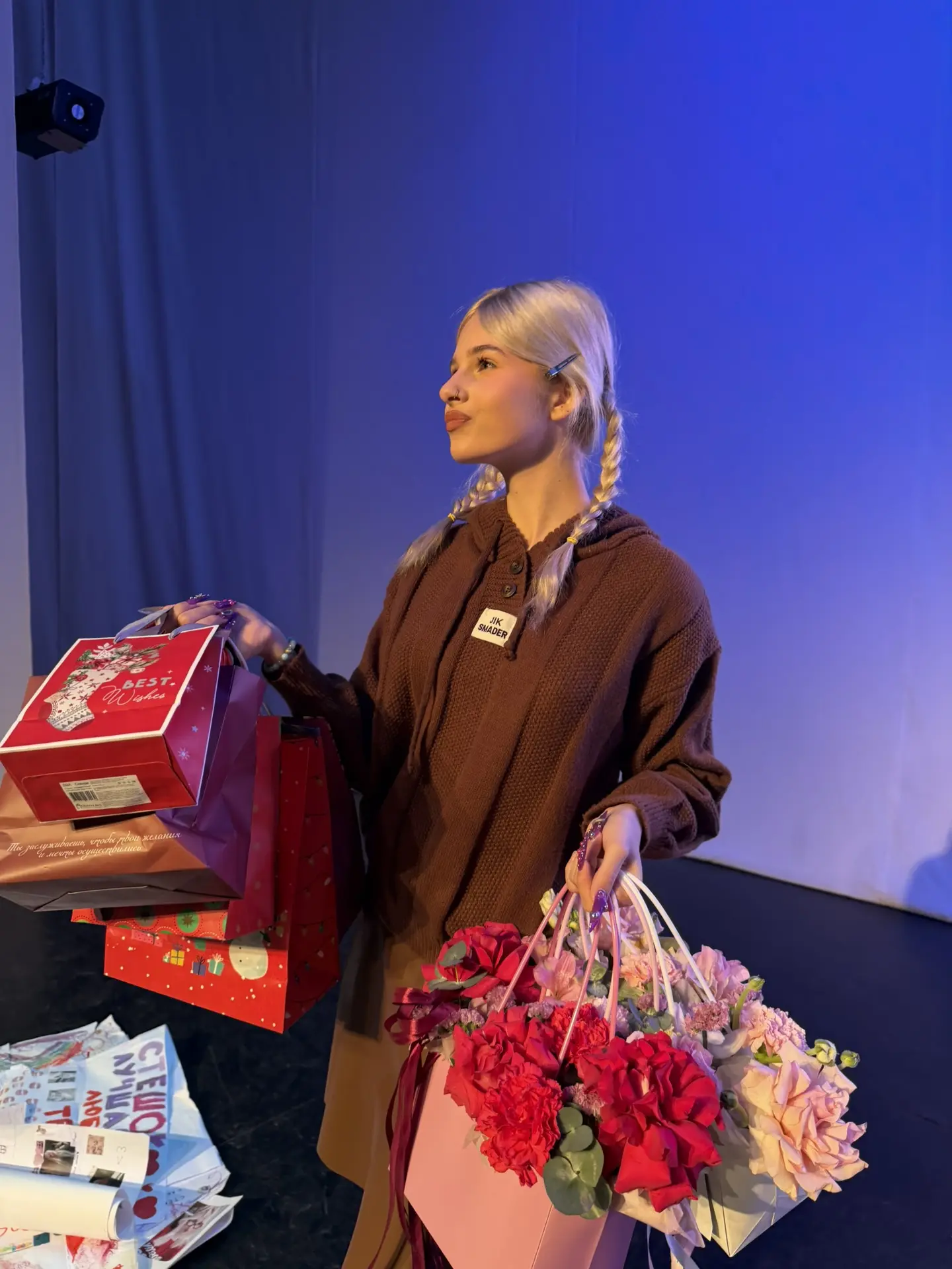 цветы,подарки,плакаты и осень громко пели песни🥳 самый лучший день 🤗