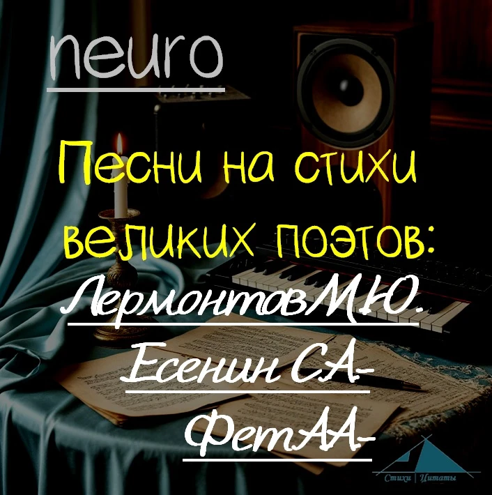Представляем Вашему вниманию официально зарегистрированный сборник «Песни на стихи великих поэтов», созданный с помощью нейросети, вышедший на всех основных музыкальных платформах, в самом лучшем качестве звучания. Приятного прослушивания! 🎵🎼🎶