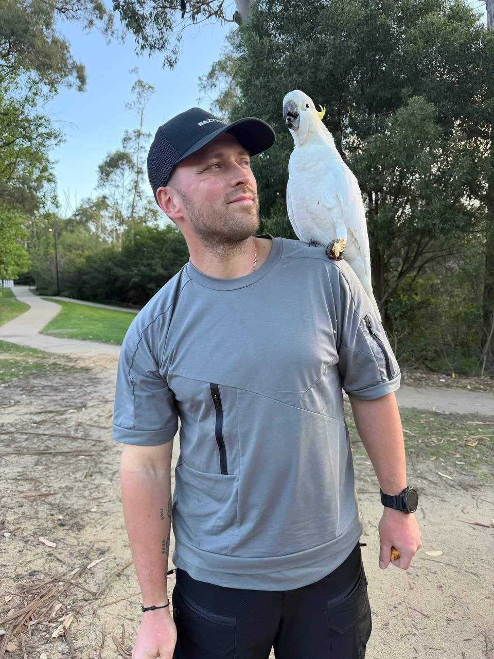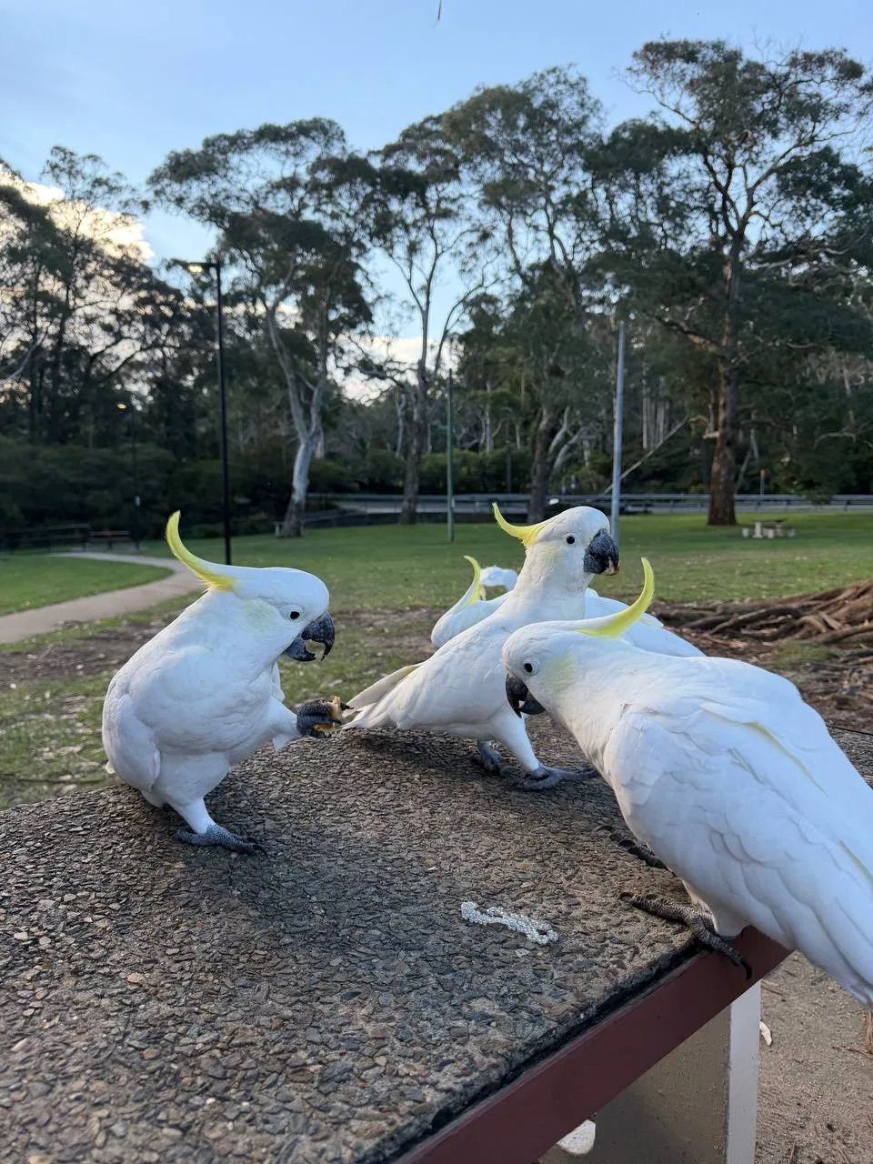 А этот Какаду белый, тут обычная птица, был посажен на плечо за кусок круассана!