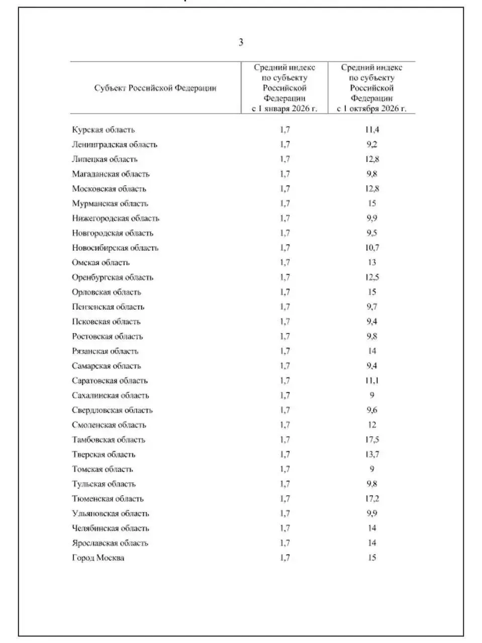 В ведомстве уточнили, что с 1 января 2026 года была проведена корректировка стоимости коммунальных услуг на 1,7%.