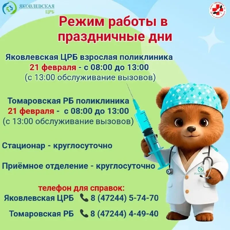 ⚡️ Яковлевская ЦРБ поделилась графиком работы в праздничные дни