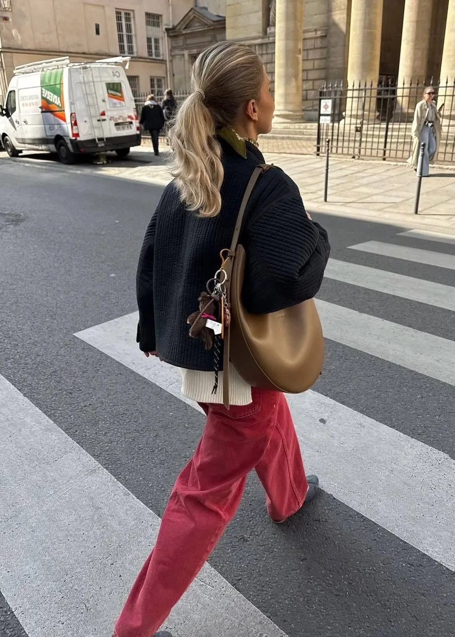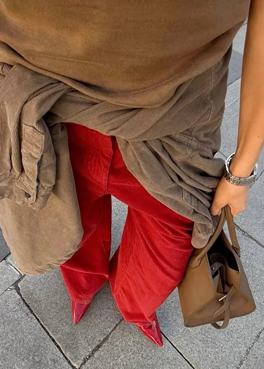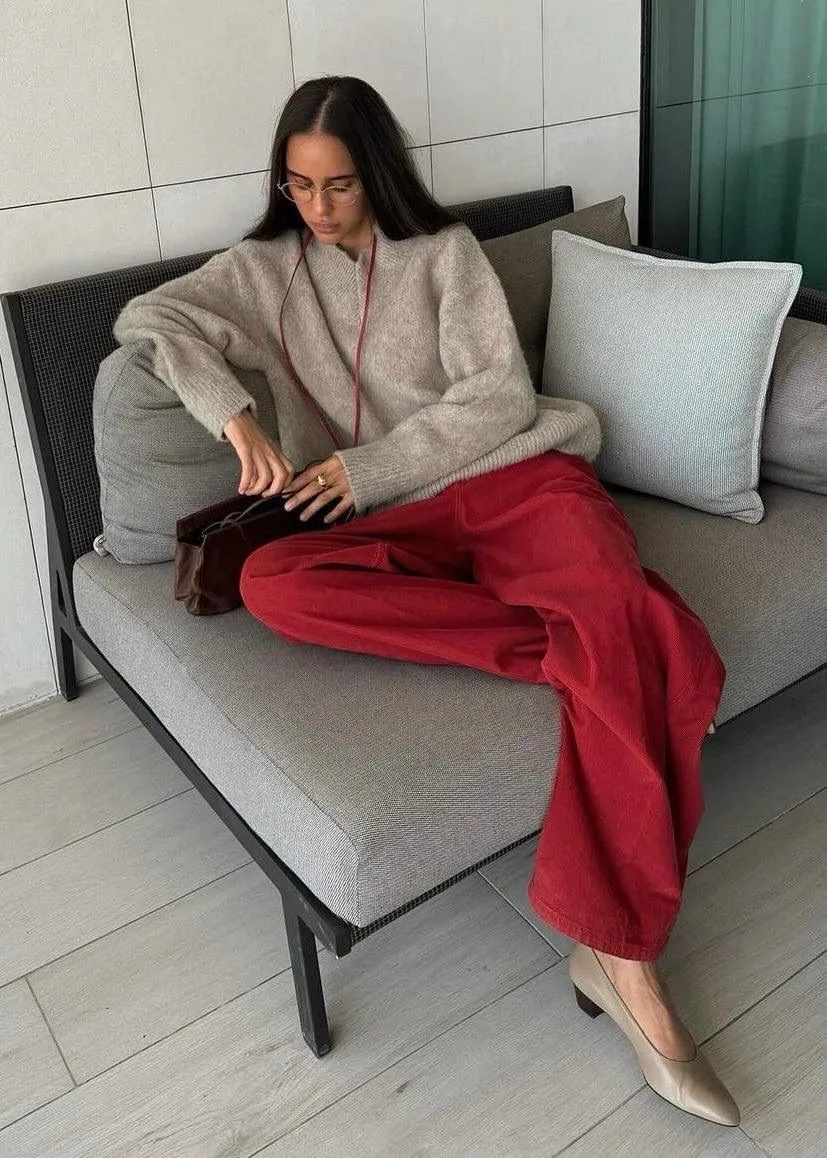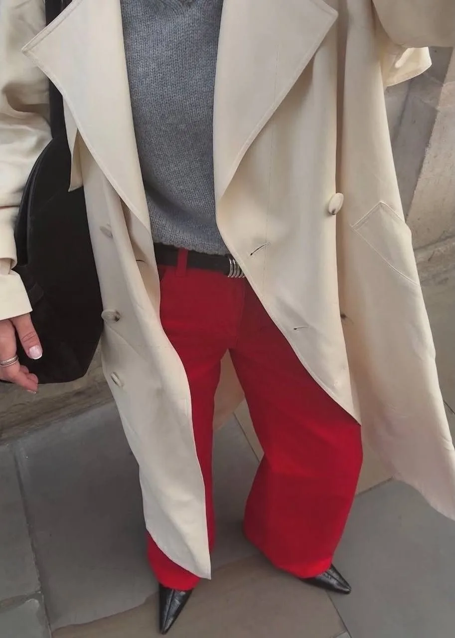 Красный деним — действительно один из ключевых трендов 2026 года, и джинсы здесь на первом плане. Это смелый, энергичный и очень выразительный выбор.