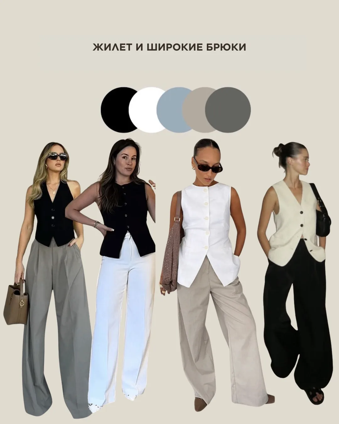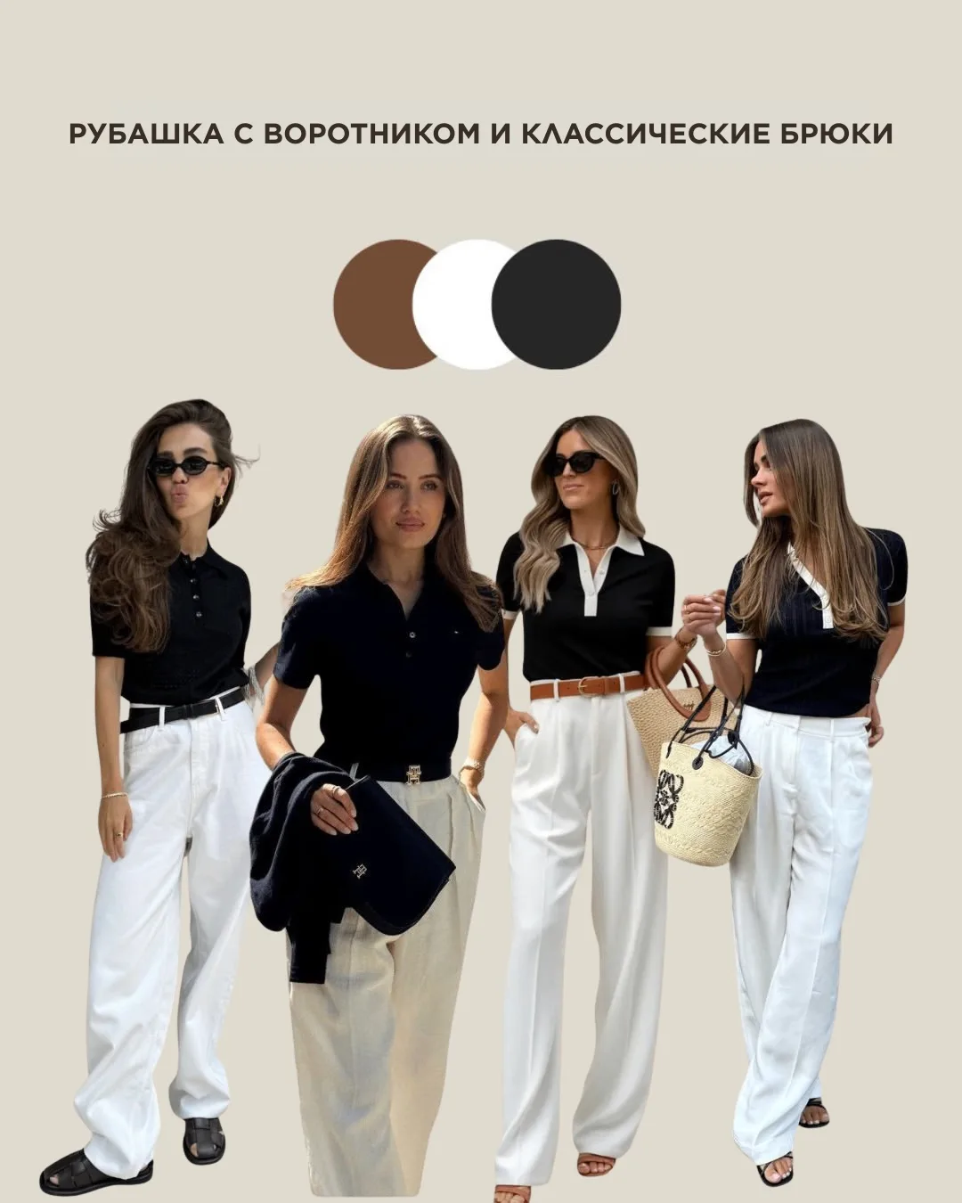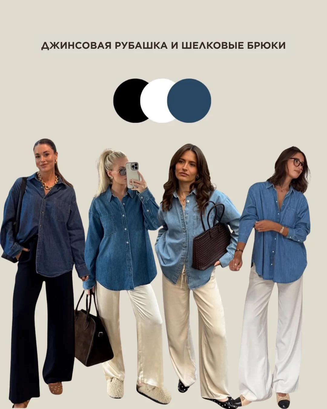 Это именно те базовые комбинации, которые спасают в моменты "кризиса гардероба". Их можно сделать еще интереснее с помощью акцентов.