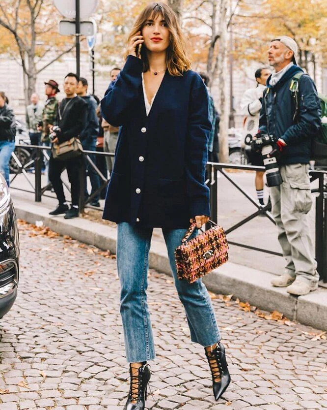 Укороченные джинсы, облегающие фигуру и слегка расклешенные снизу, — одна из любимых моделей французских женщин. Их называют "буткат". Джинсы такого стиля есть в гардеробе многих девушек и будут актуальны весной и летом 2026 года.