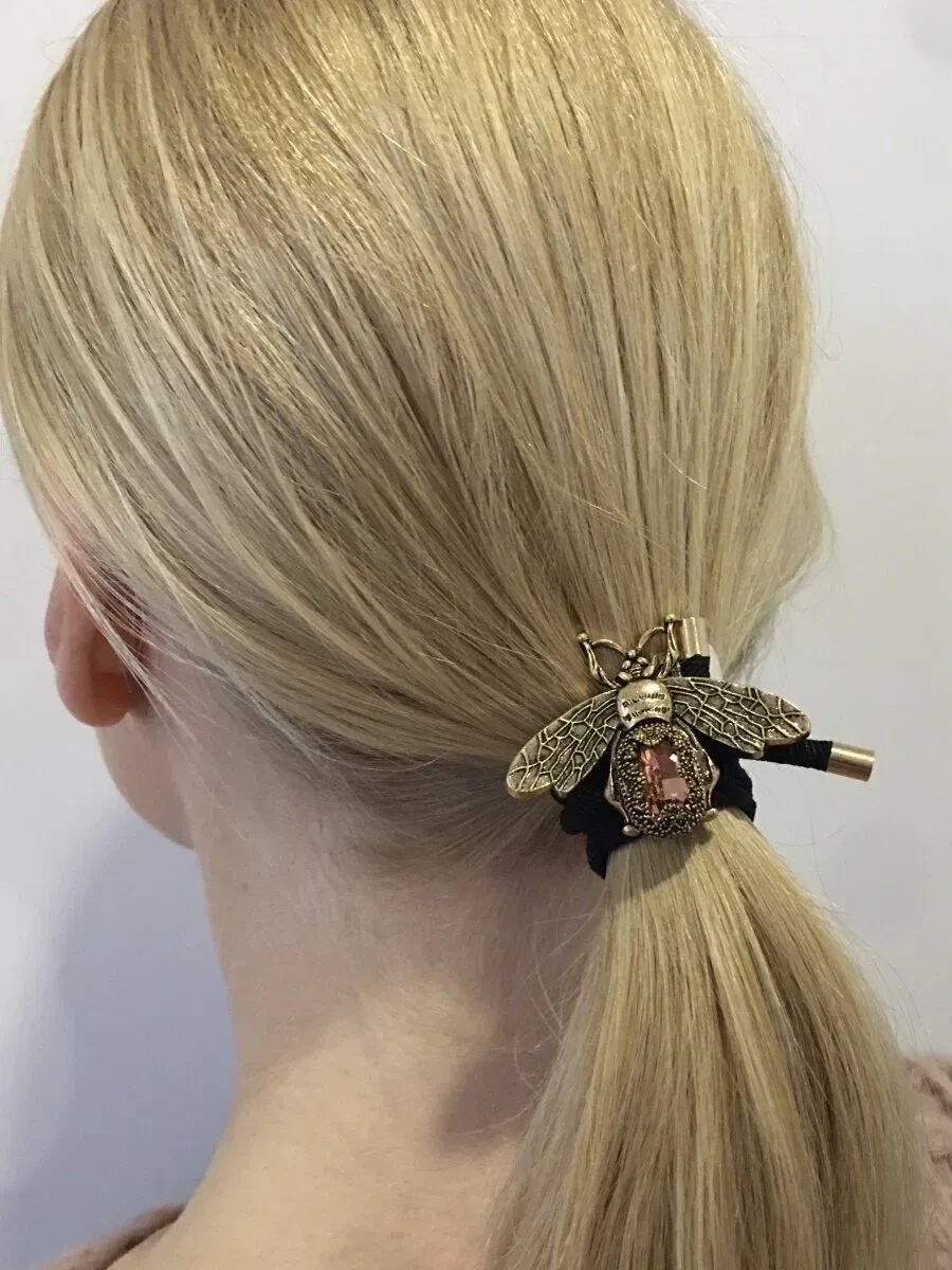 Стильная винтажная резинка для волос с пчелкой и бежевым кристаллом от бренда VERBA https://market.yandex.ru/cc/9AAehP