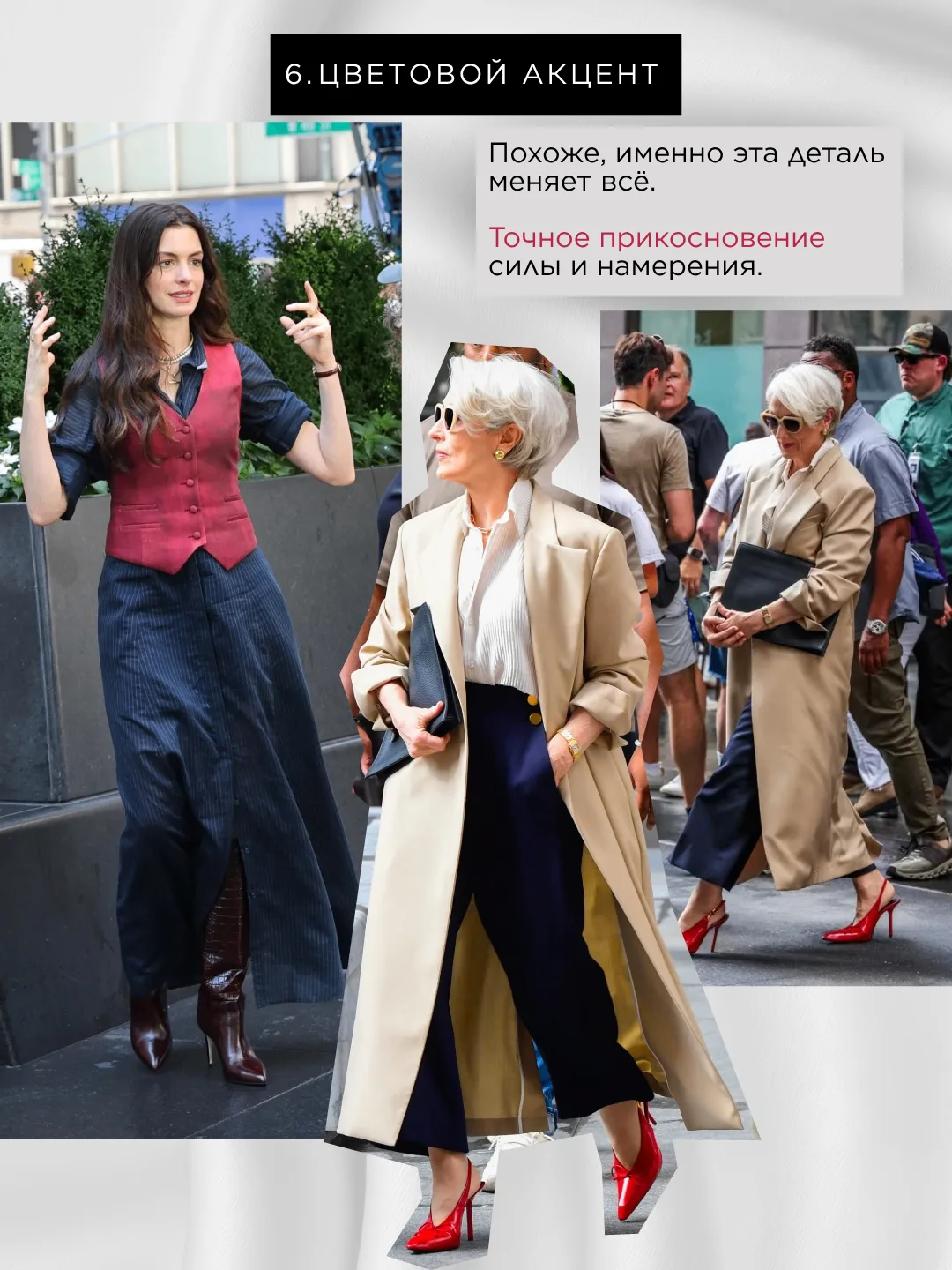 От элегантных нарядов до более повседневных образов, они добавляют изюминку — вы бы использовали такой стилистический приём?