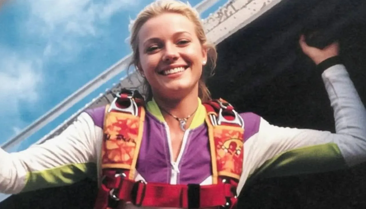 1999 год, штат Северная Каролина. Высота 4300 метров. Основной парашют не раскрылся — стропы запутались. Запасной раскрылся, но порвался на высоте 2000 метров. Она падала со скоростью 240 км/час. Без парашюта. 30 секунд до земли.
