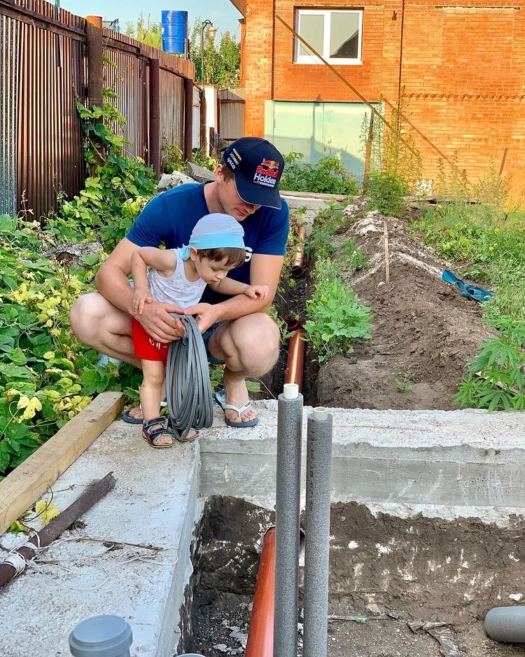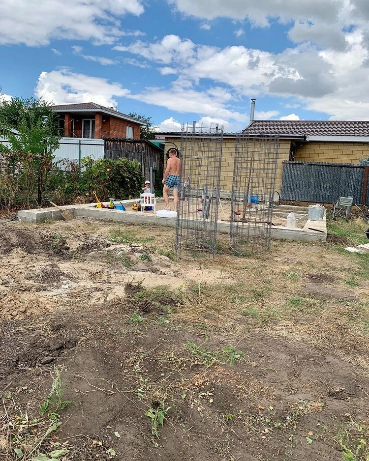 Параллельно прокладывали коммуникации: вкопали кольца под выгребную яму, сделали скважину, подвели воду в дом. Завершили этап заливкой чернового пола.
