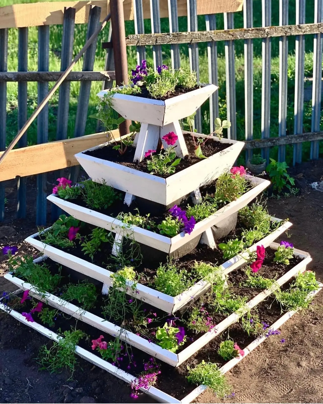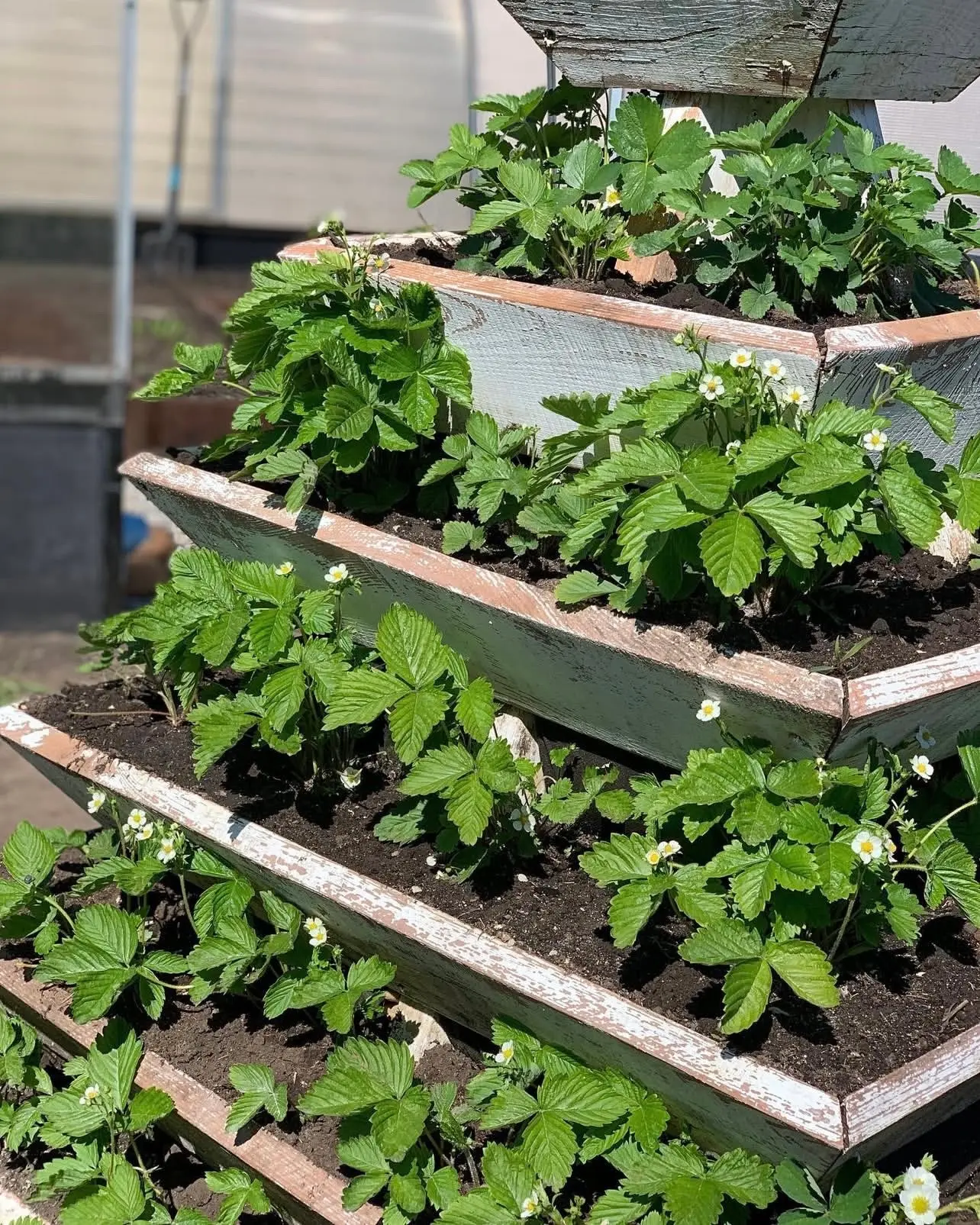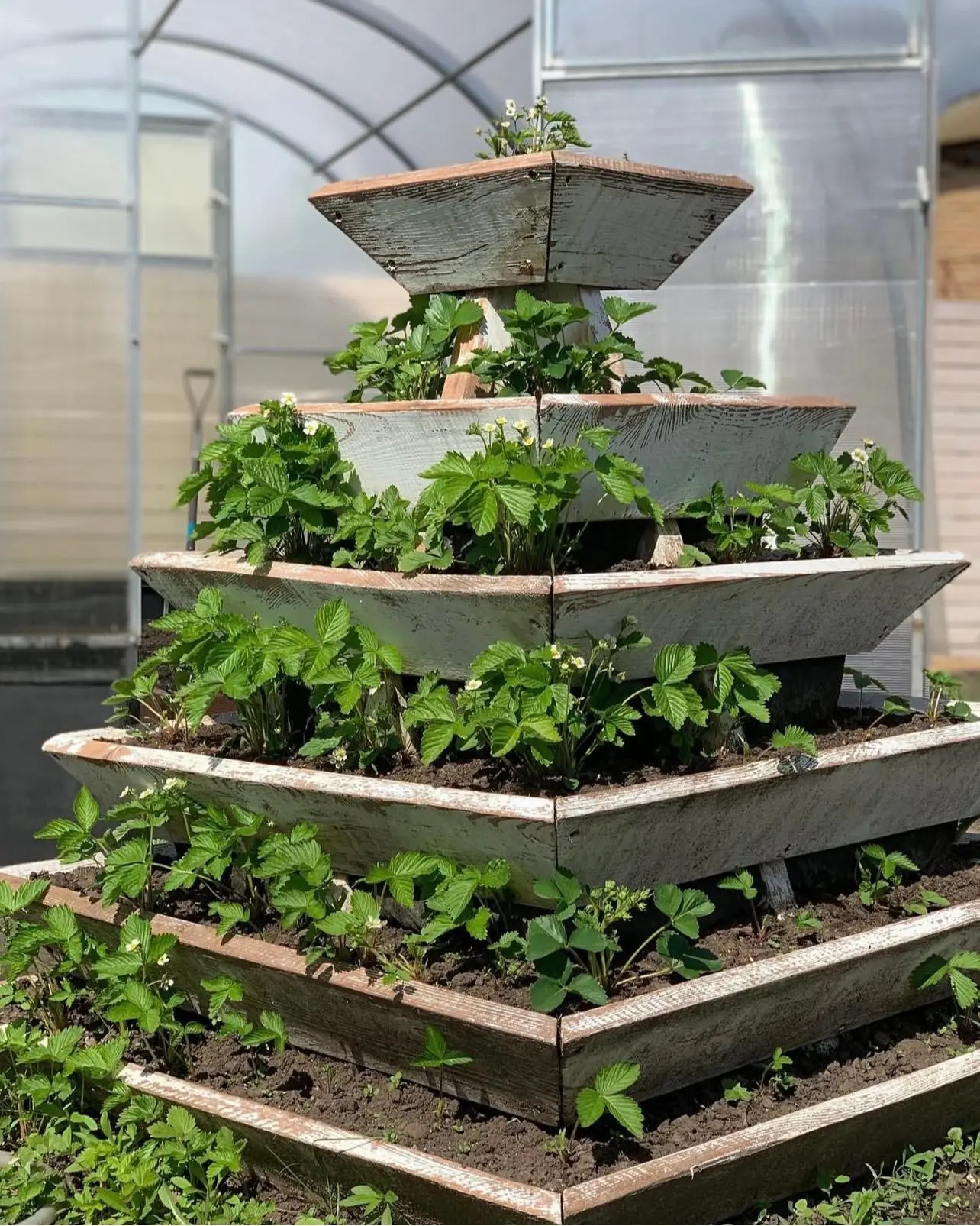 В первый год я только пробовала: с двух сторон посадила земляничку, клубнику и разную зелень, а с другой стороны хотелось красоты и разнообразия поэтому посеяла лобелию и петунии.