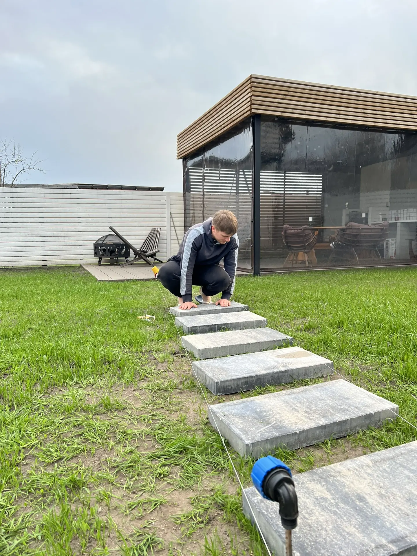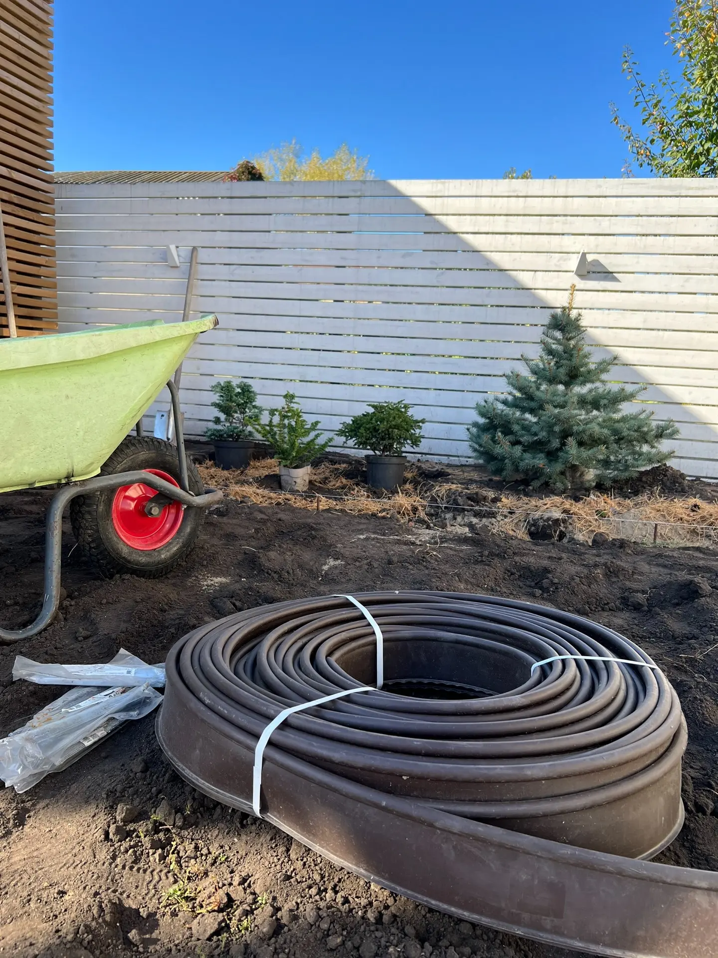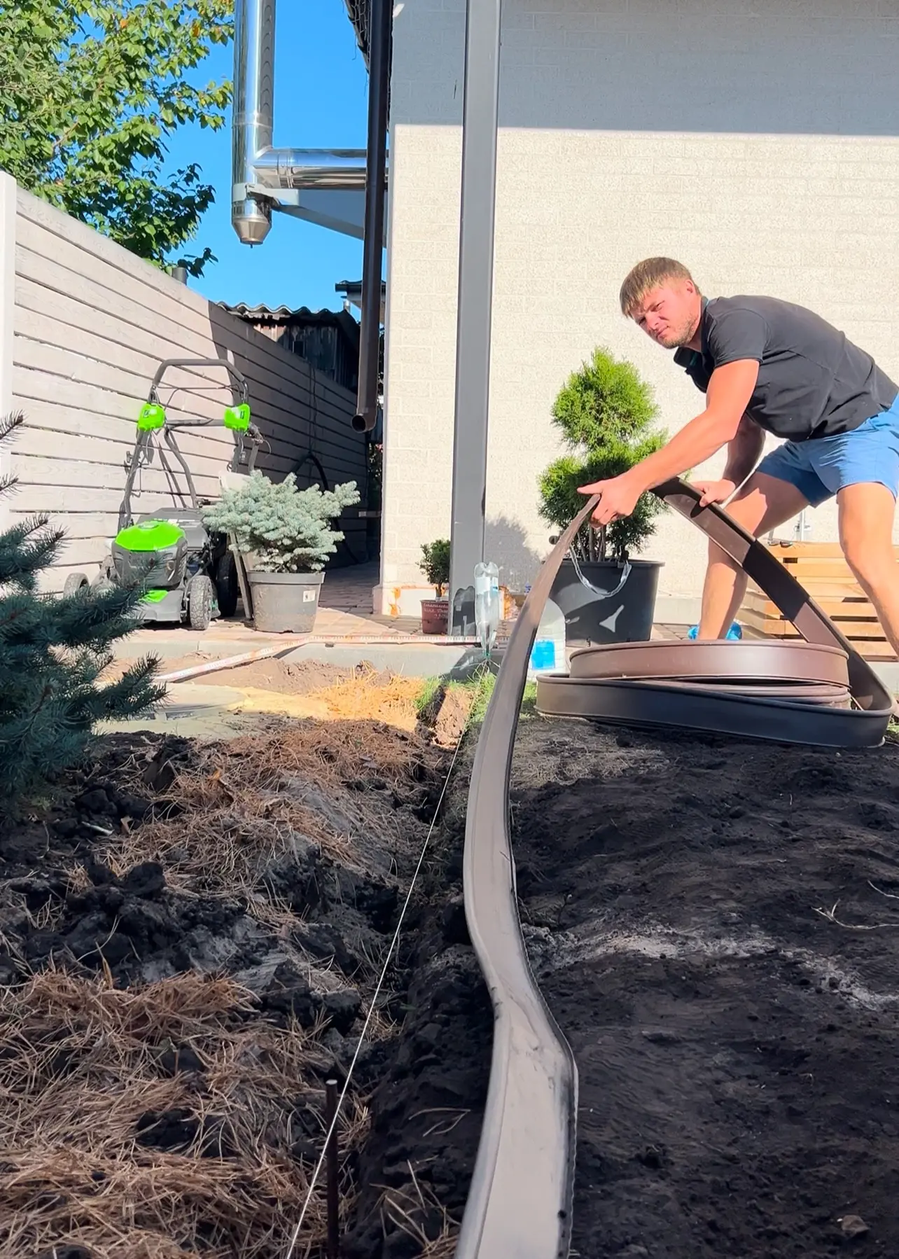 В саду решили сделать аккуратную кромку газона и ровные дорожки.