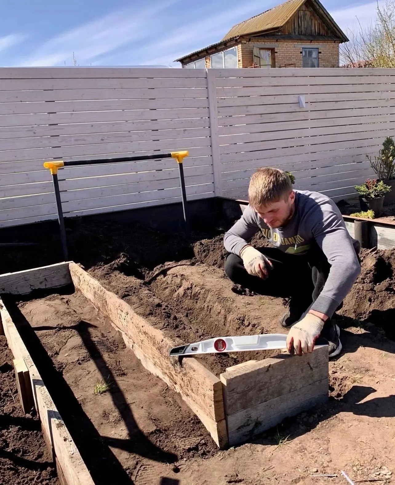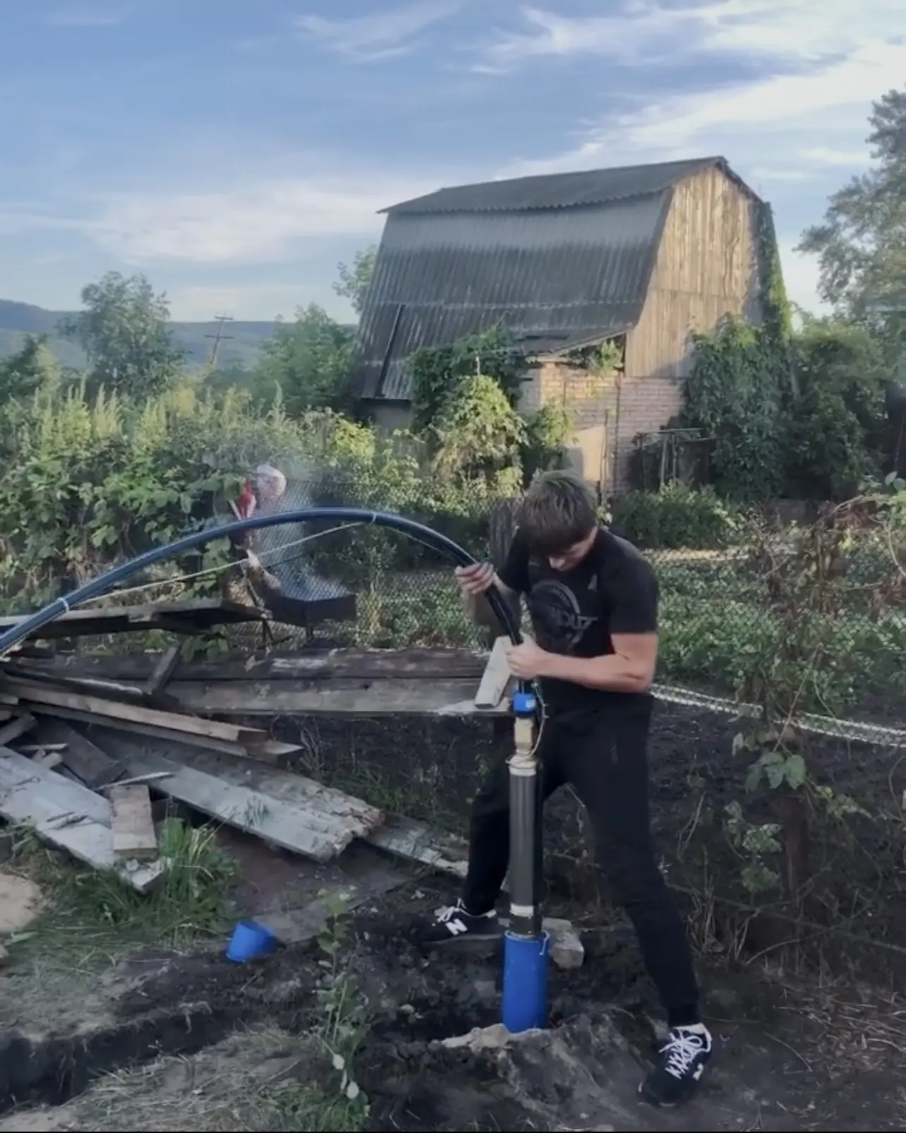 Первым делом мы подготовили участок и обнаружили под будущим фундаментом старые ЖБИ-кольца — аккуратно извлекли и использовали для скважины.