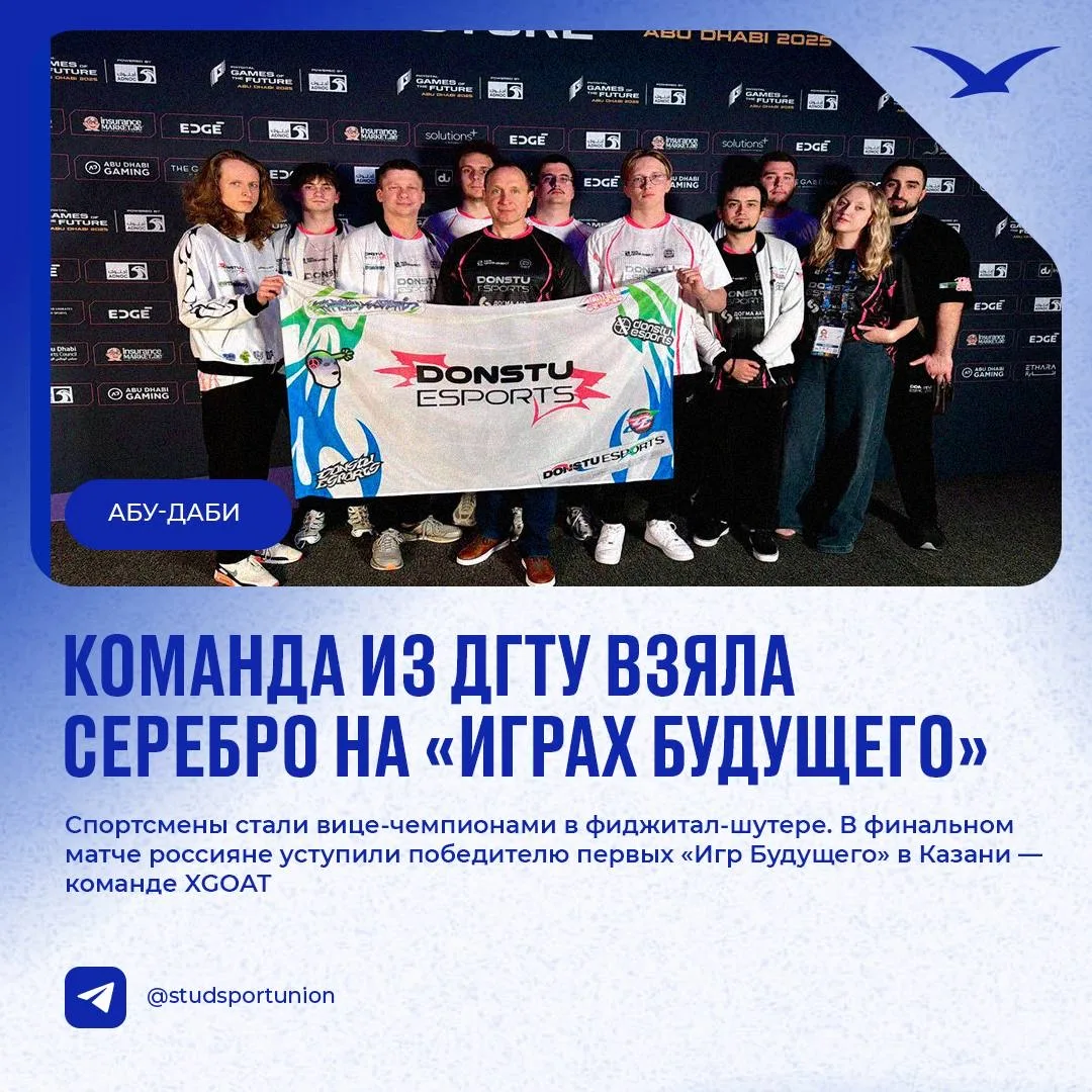➡️Коллектив Donstu Esports из ростовского университета завоевал серебряные медали вторых «Игр Будущего» в фиджитал-шутере. За победу на турнире в Абу-Даби вели борьбу восемь сильнейших команд планеты.