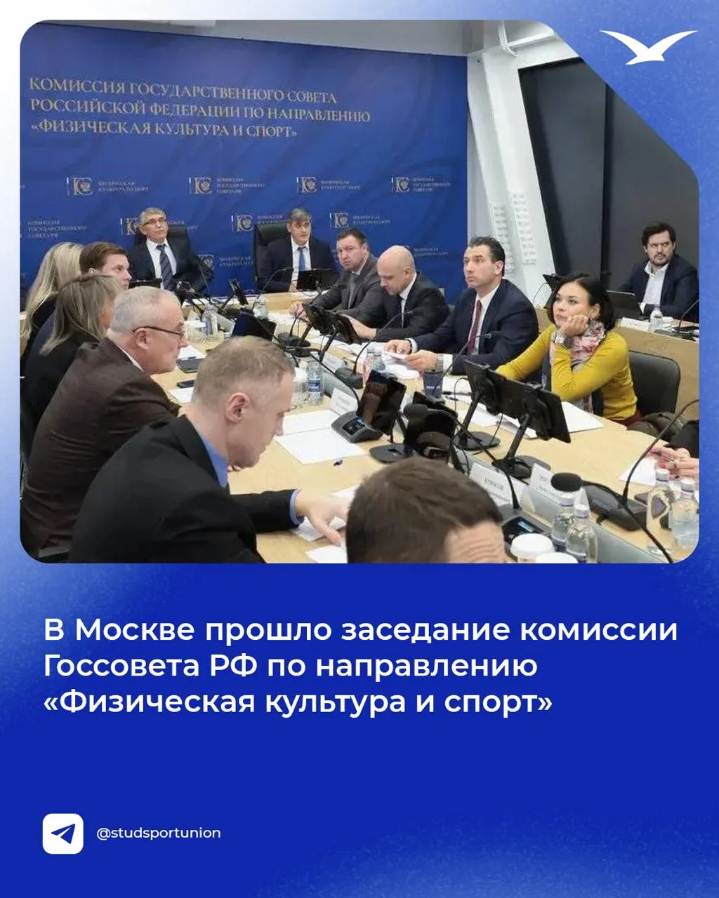 В Москве прошло очередное заседание комиссии Госсовета РФ по направлению «Физическая культура и спорт». Среди участников встречи — президент РССС <БУРЕВЕСТНИК> Сергей Крюков.