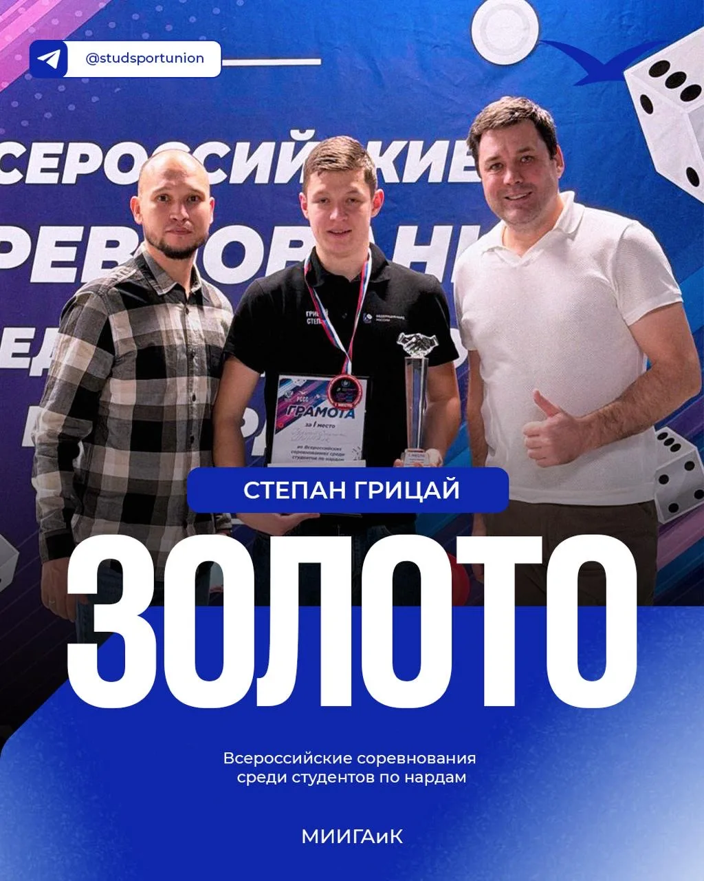 Помимо золотых медалей и титула первого победителя Всероссийских соревнований среди студентов по нардам Степан Грицай завоевал путевку с полным обеспечением на Кубок России по нардам, который пройдет в Люберцах с 25 ноября по 5 декабря.