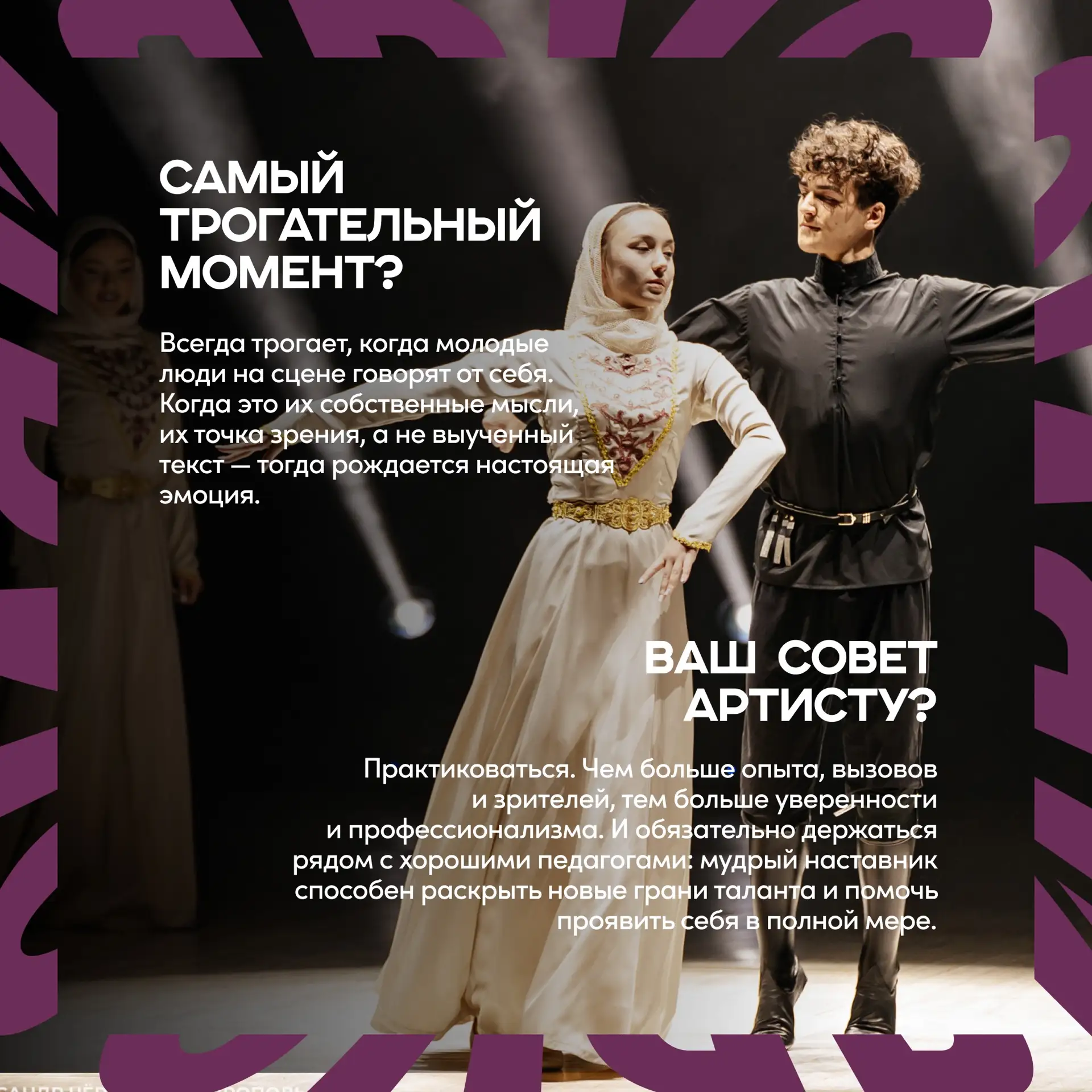 📌 Марина Галяветдинова — профессор кафедры режиссуры Тюменского государственного института культуры, главный режиссёр Молодёжного театра «НАШ», многократный обладатель Гран-при Российской студенческой весны в направлении «Региональная программа», лауреат всероссийских и международных театральных фестивалей и конкурсов.