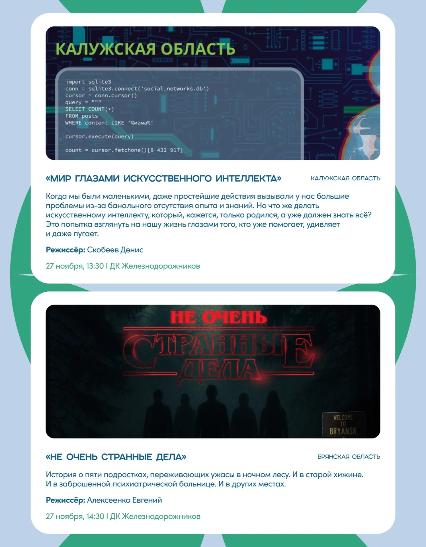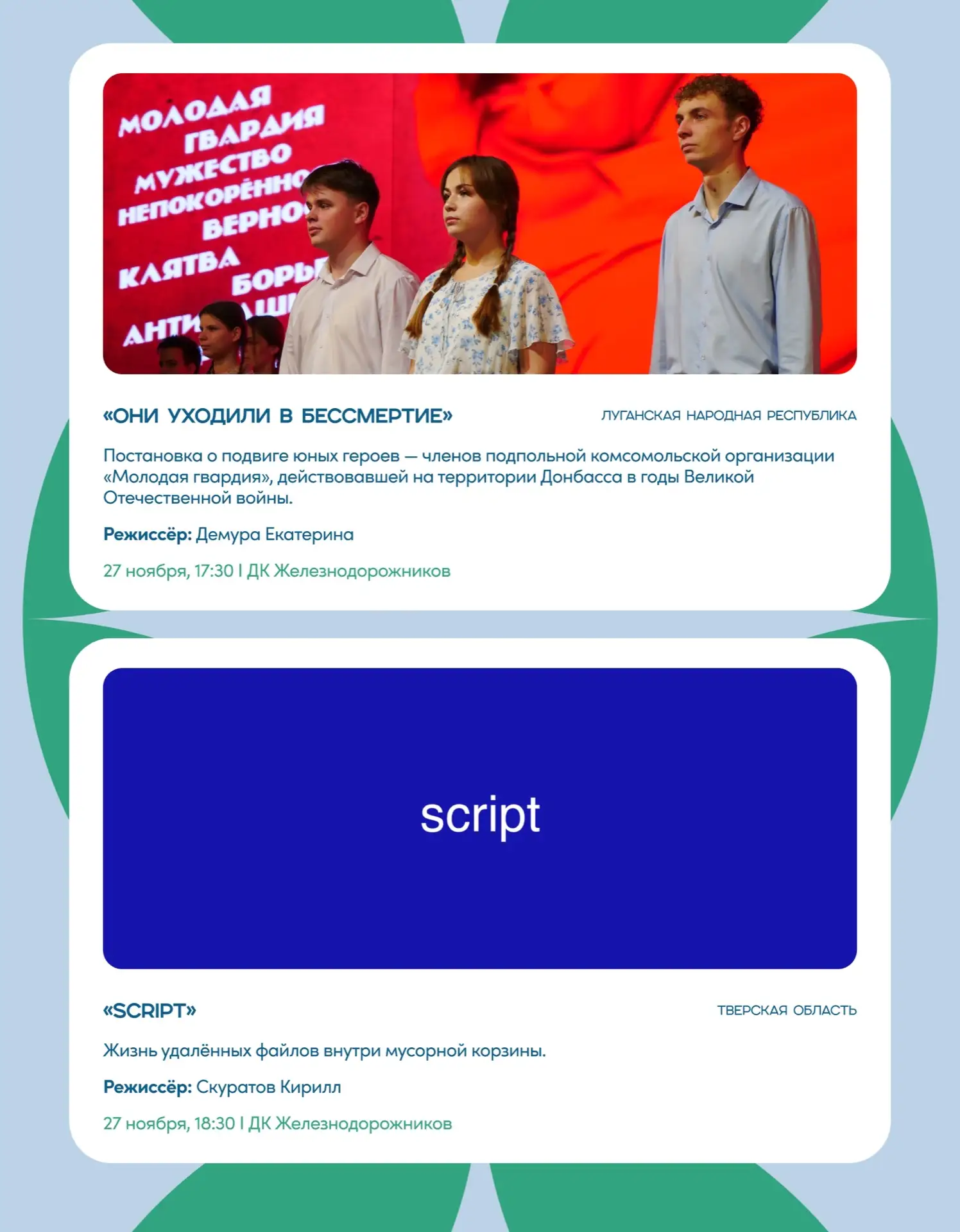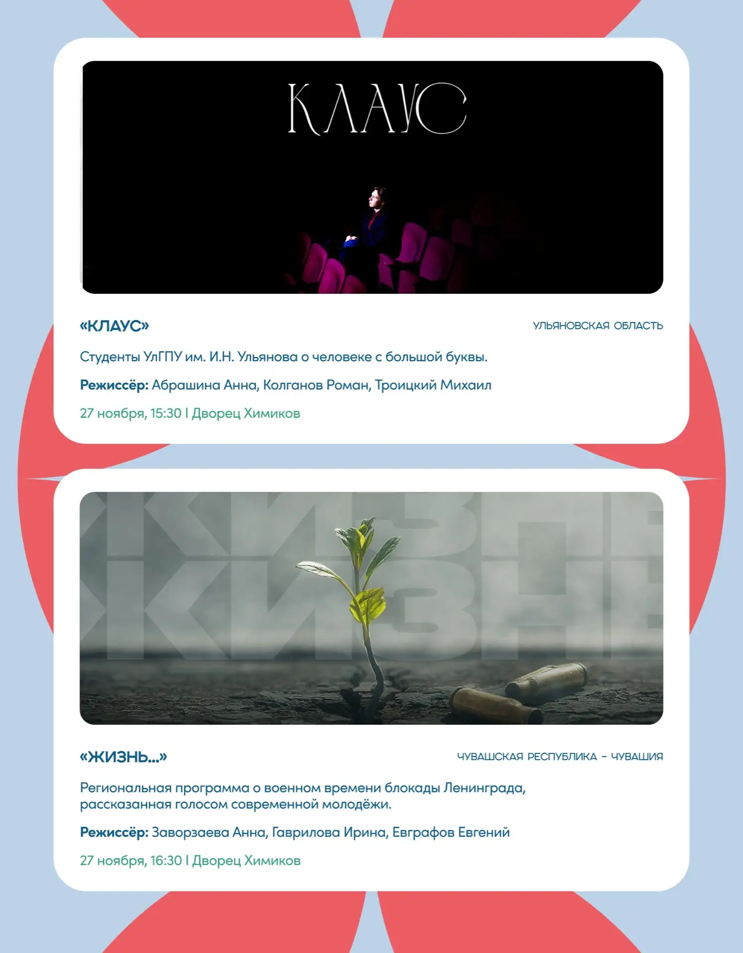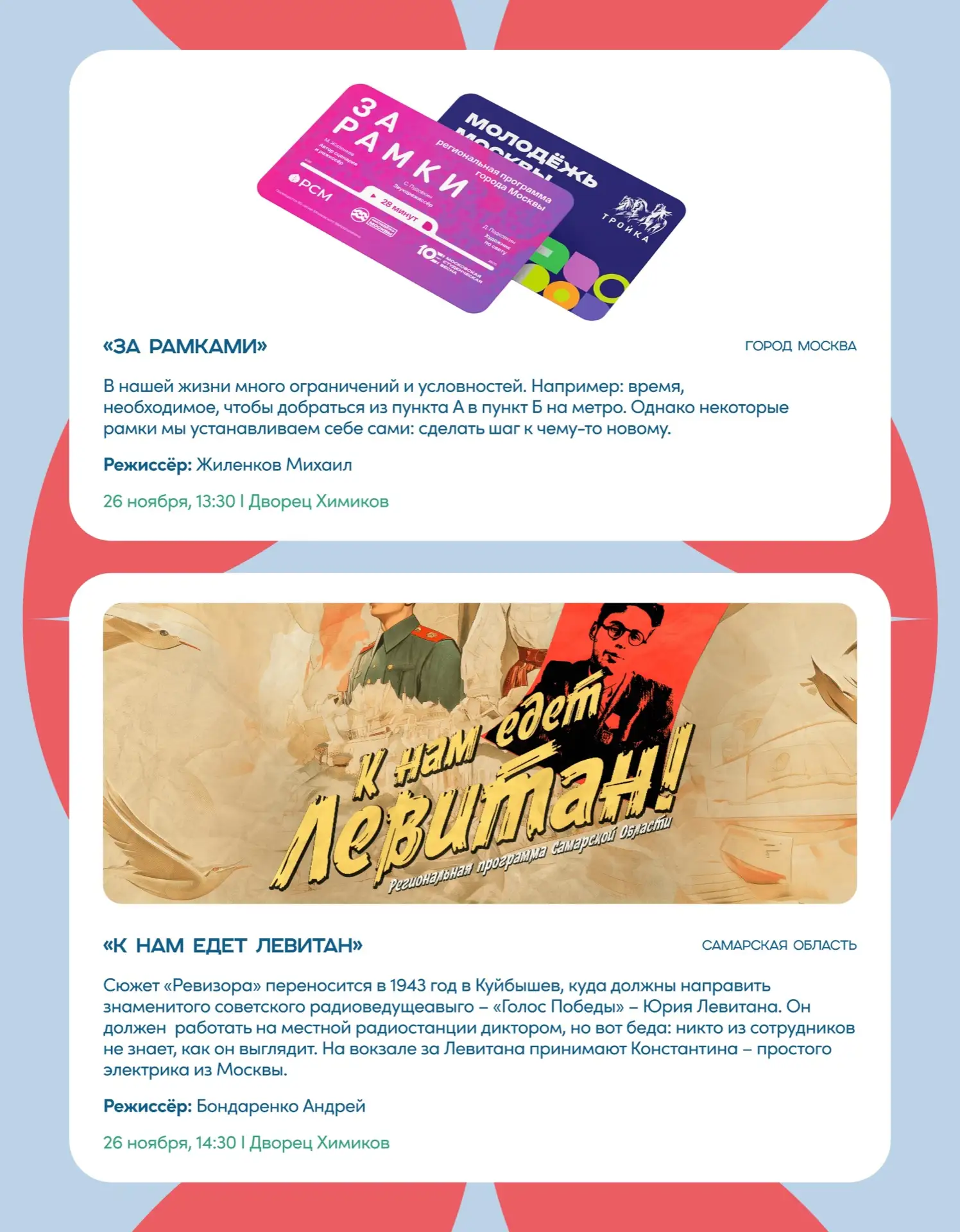 Всё о региональных программах Лиги II. В карточках — главное о предстоящих конкурсных просмотрах.