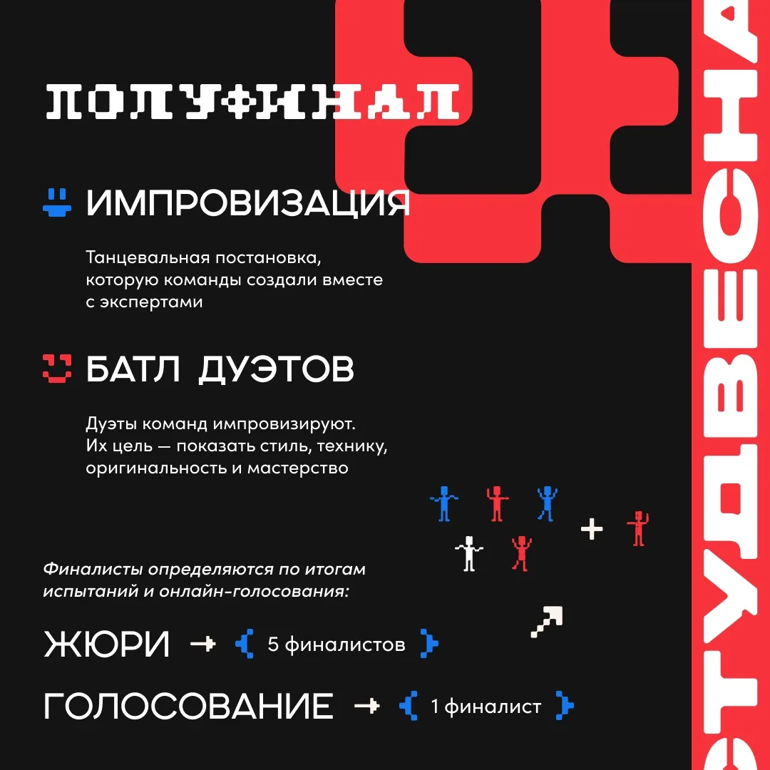Команда, которая наберёт больше всего голосов, пройдёт в финал X Всероссийского танцевального студенческого проекта «ВДвижении. Лучшие».