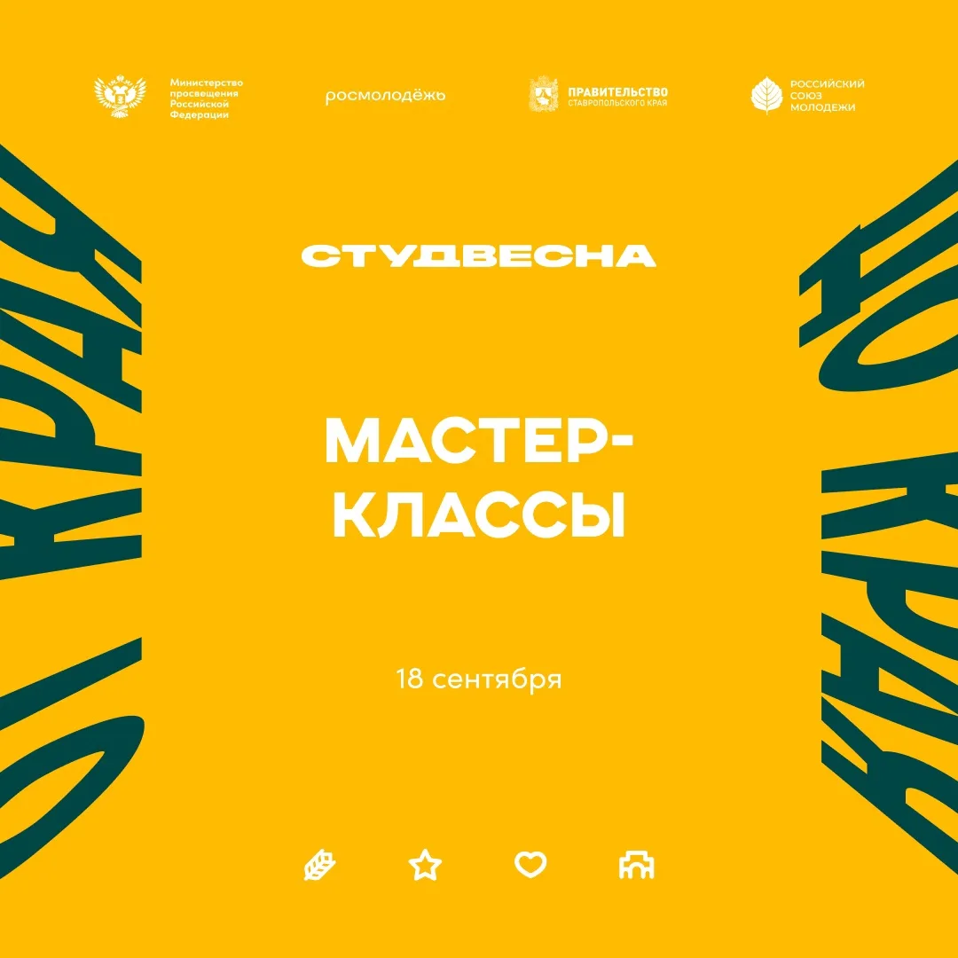 — Мастер-класс «Связь тела и эмоции: на сцене и в жизни» от Саши Сумм, эксперта Театрального направления (Ставропольская государственная филармония, пр. Карла Маркса, 61). Ссылка на регистрацию: vk.cc/cPDj2T