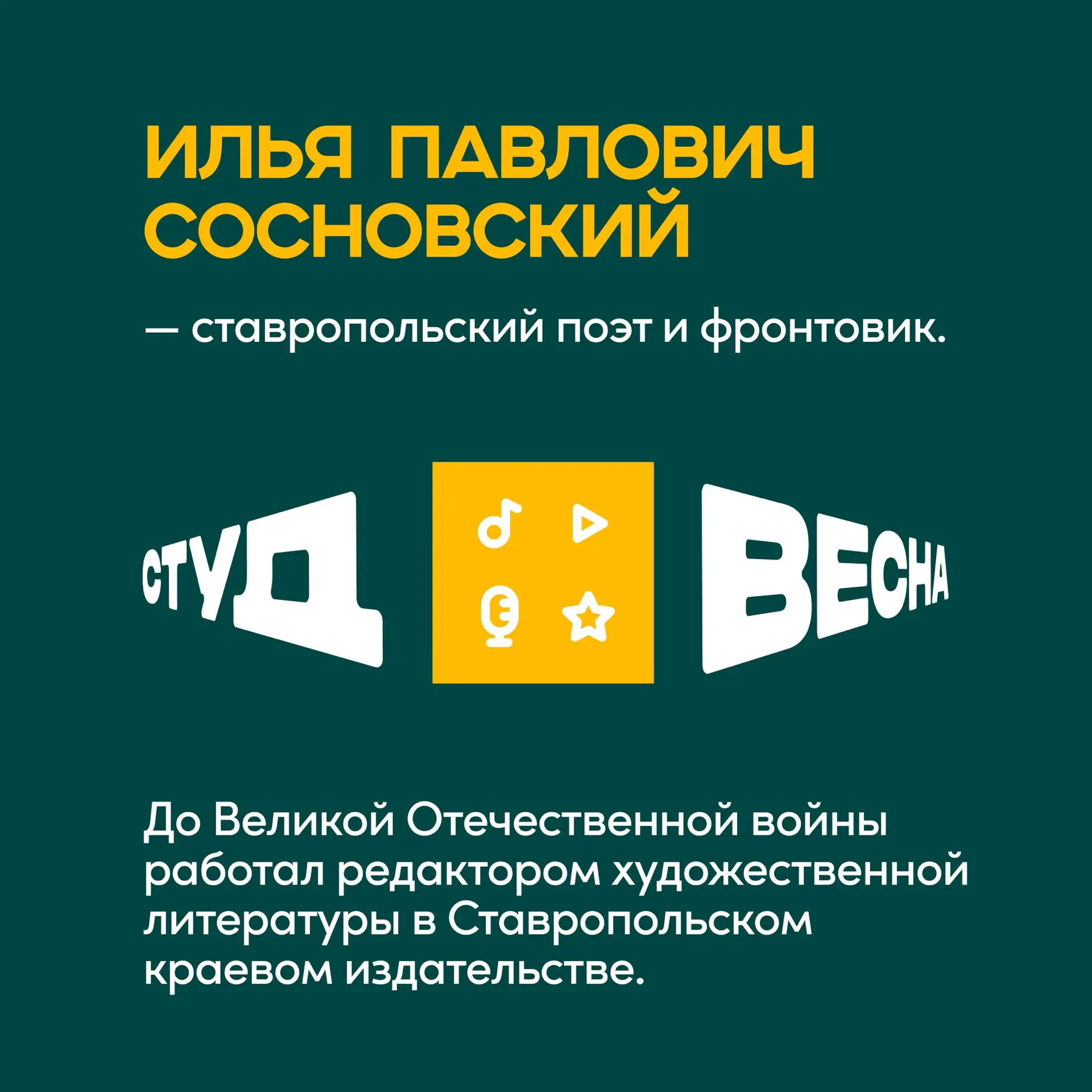 Рассказываем про главное вдохновение Фестиваля для студентов ПОО — Илью Павловича Сосновского, ставропольского поэта и фронтовика.