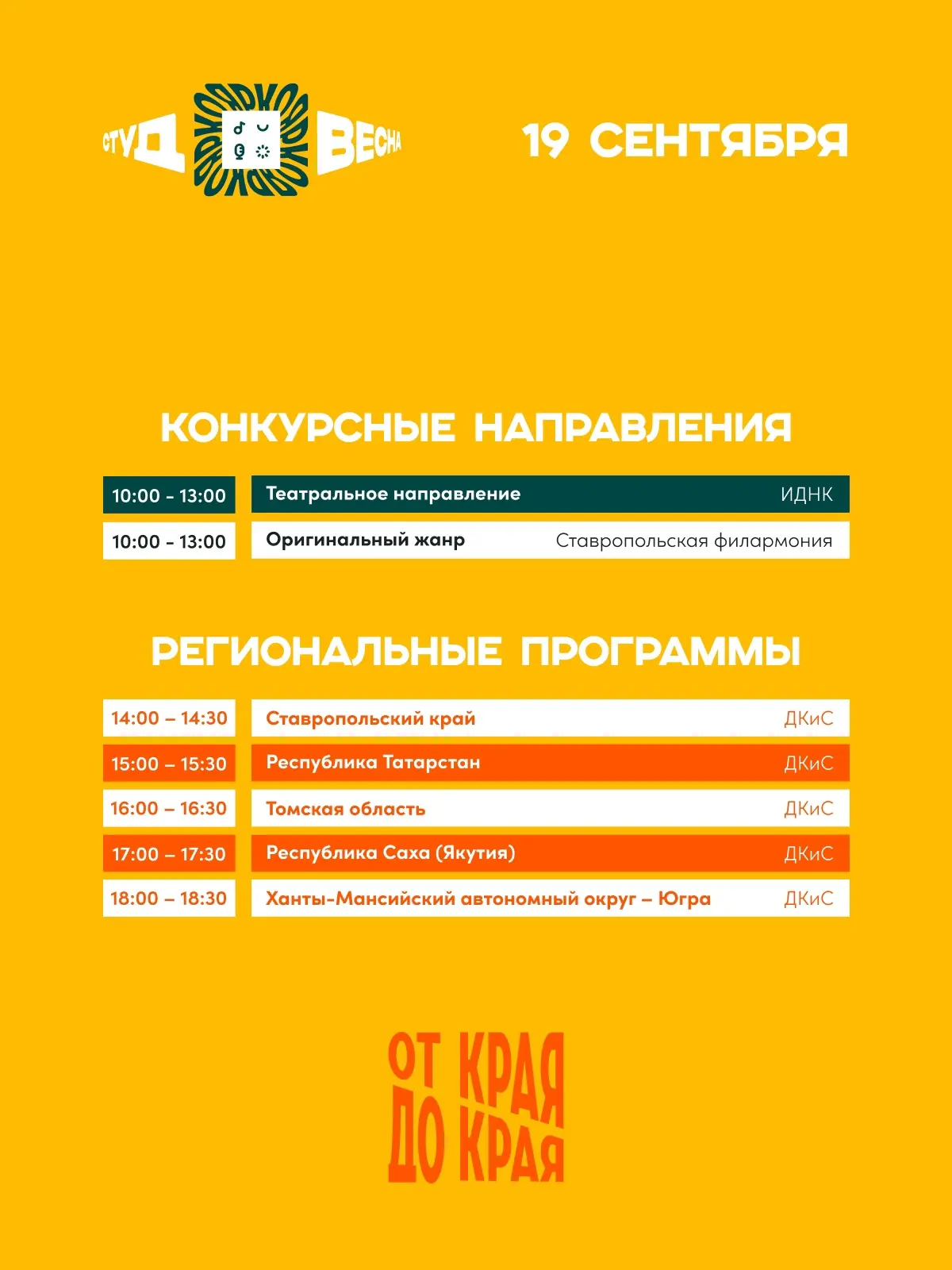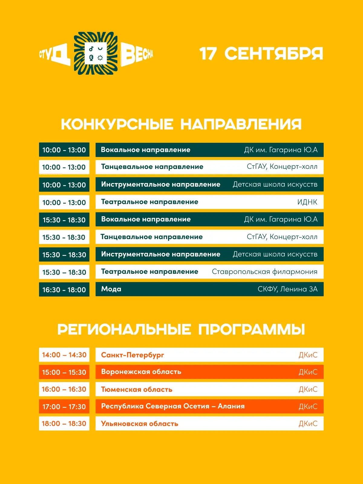 Внутри – расписание региональных программ и работы направлений, чтобы точно успеть всё ⌛️