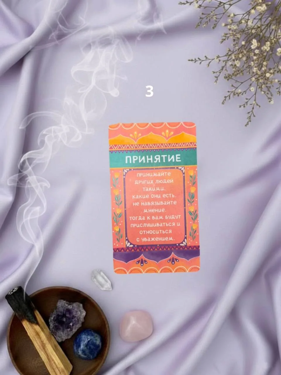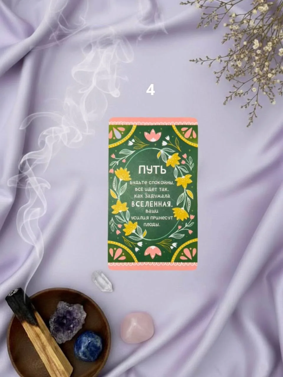 Любовь, женственность, нежность и забота о себе. Смягчает и раскрывает сердце. Тот случай, когда не надо быть сильной, можно просто быть живой.