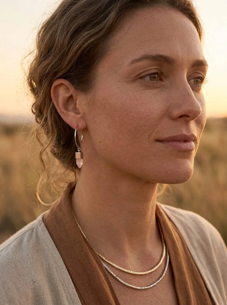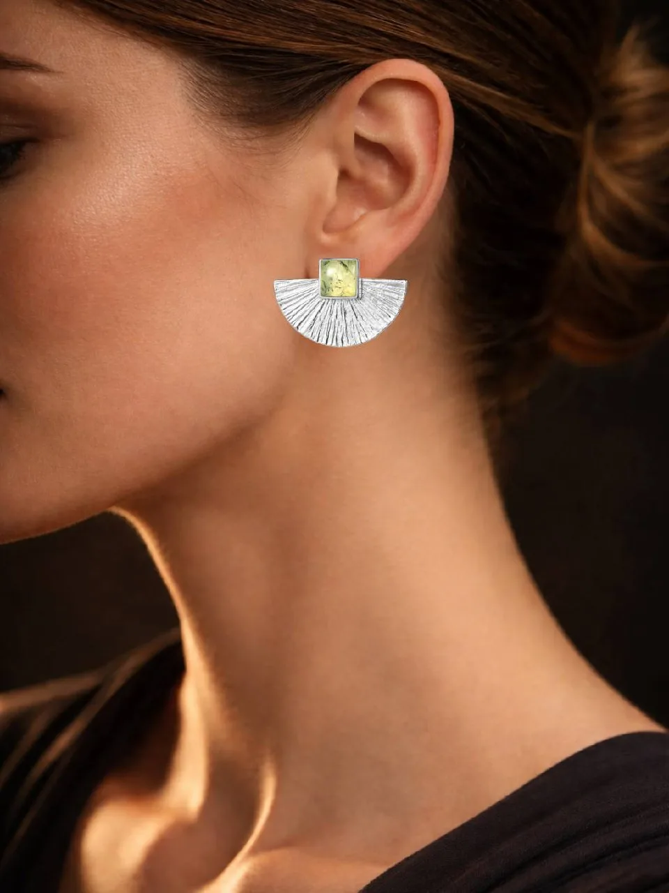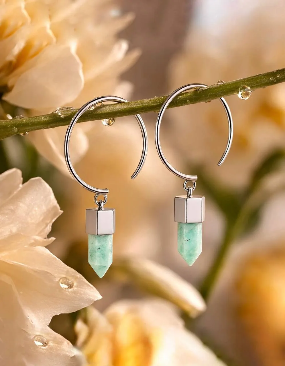 И самое приятное, никакого перебора с театральной шизотерикой: только минималистичные серьги с натуральным камнем, которые выглядят современно, универсально и легко. Чистая геометрия, немного бохо эстетики, лёгкий минимализм украшений для города с ощущением природной гармонии.