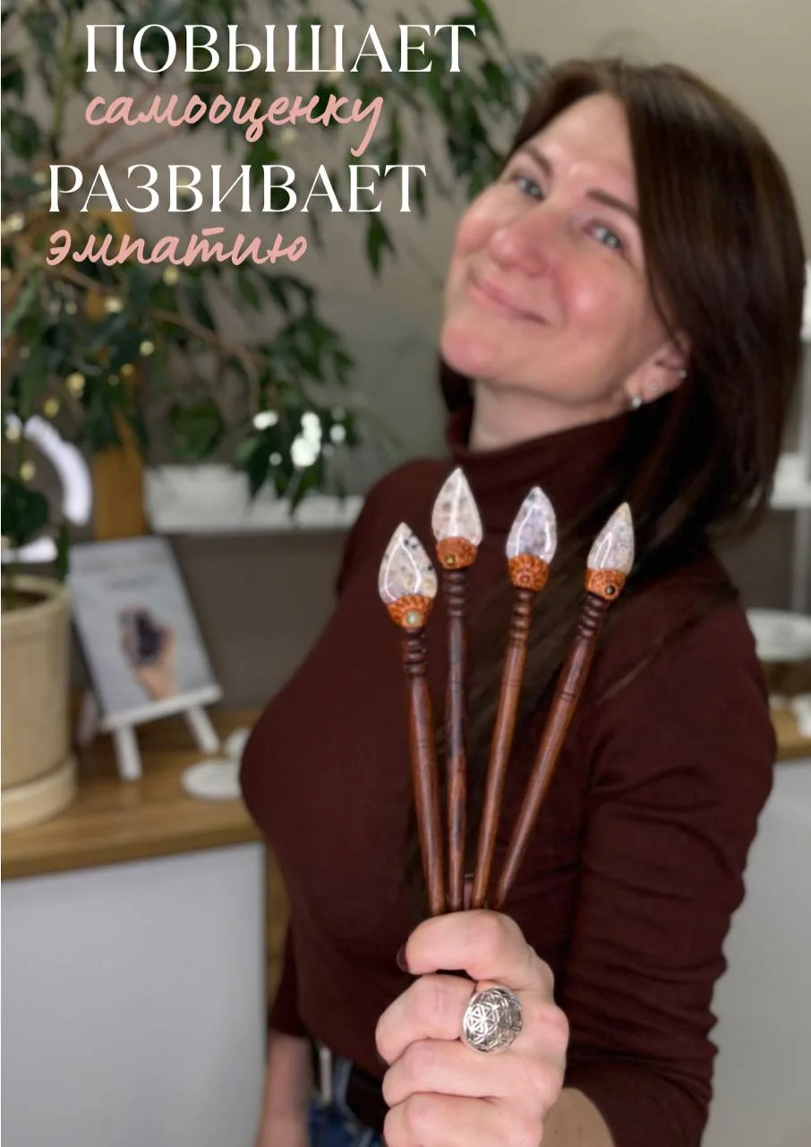 Это не просто аксессуар для волос, а натуральный камень амазонит в деревянной оправе, который не просто собирает образ, а напоминает а твоей трансформационной женской силе.