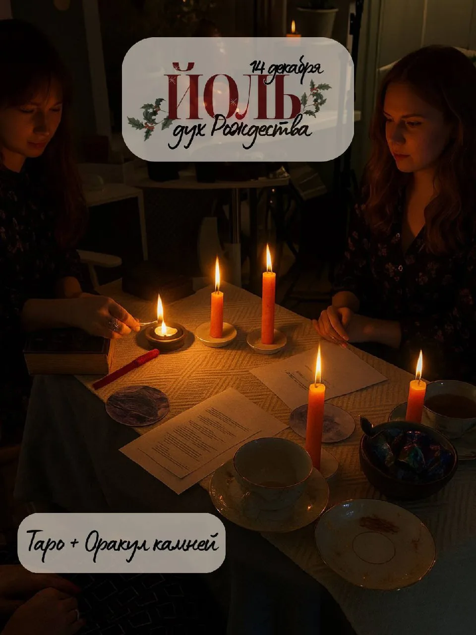 Атмосфера спокойная и уютная: свечи, мягкий свет, ароматы и горячие напитки. Никакого шума — только разговоры, которые действительно слышны. Йольская магия как инструмент запуска нового цикла