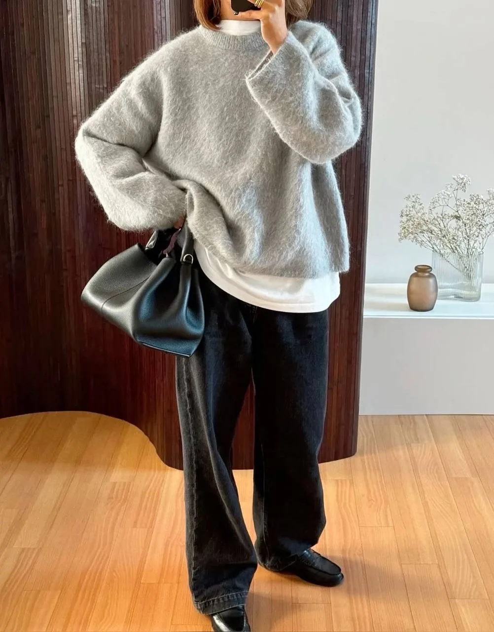 Казалось бы — базовый оттенок, но он очень коварный. Холодный, «мышиный» серый усиливает ощущение серости всего образа, если к нему не добавить фактуры, контраста или цвета.