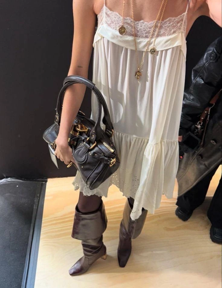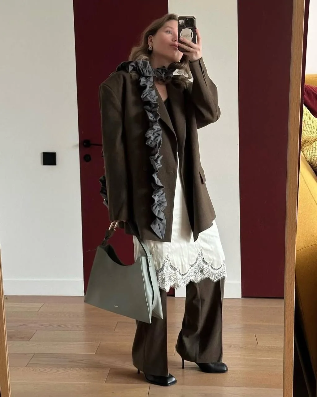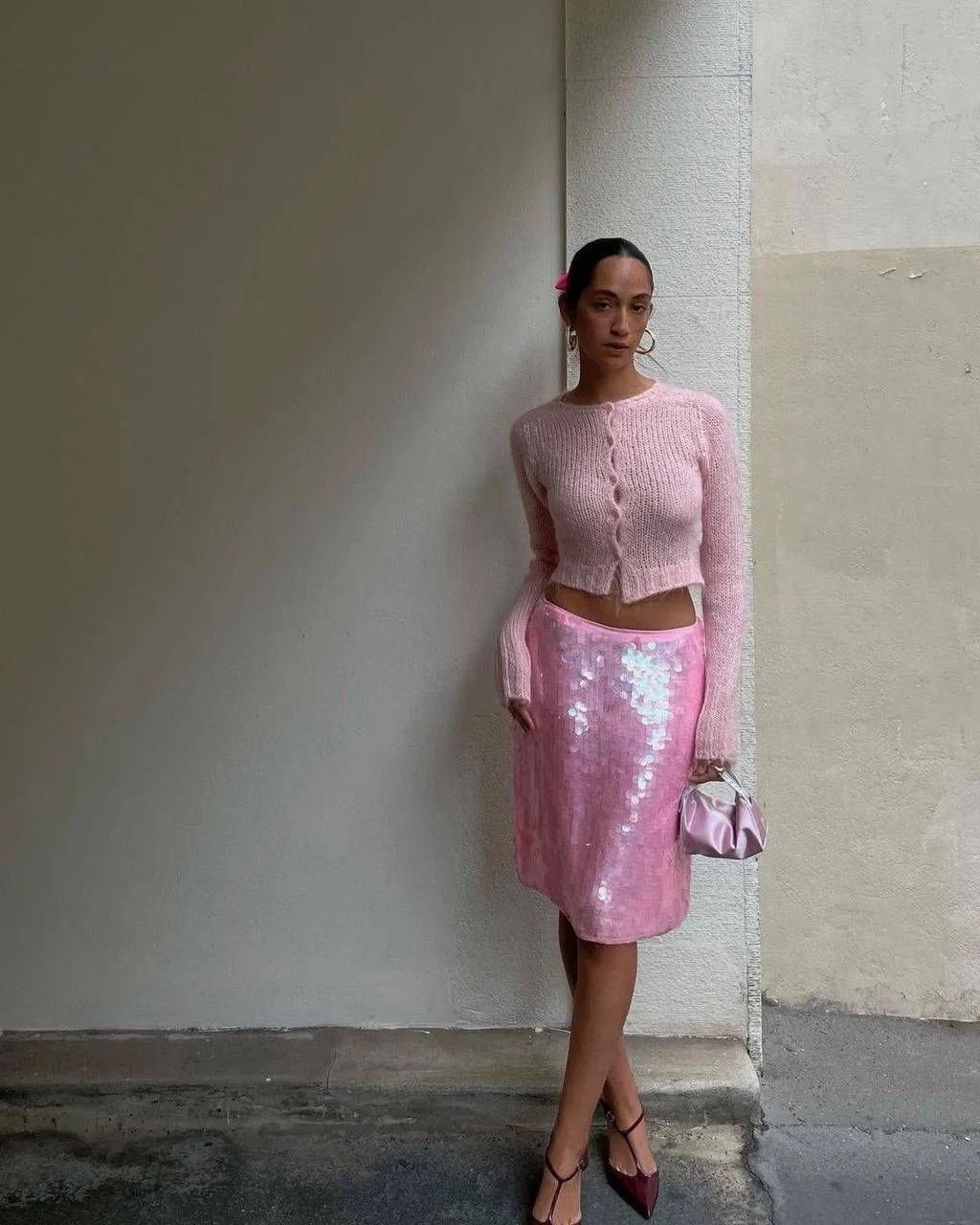 Женственность медленно, но верно захватывает гардеробные тех, кто раньше предпочитал спортивный стиль и оверсайз. В игру вступают приталенные платья, юбки-карандаши, туфли-лодочки на высоком каблуке, украшения с жемчугом, изящные шляпы, перчатки и клатчи. Эти элементы создают образ настоящей леди, подчеркивая утонченность и элегантность.
