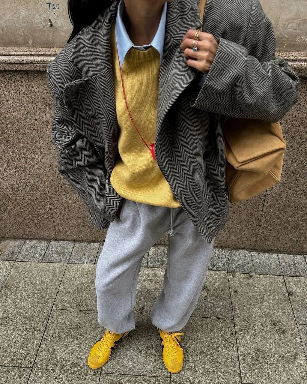 Свитер, кардиган, худи, жилет, легкая куртка. Тут уже можно добавить фактуру: трикотаж, флис, вельвет.