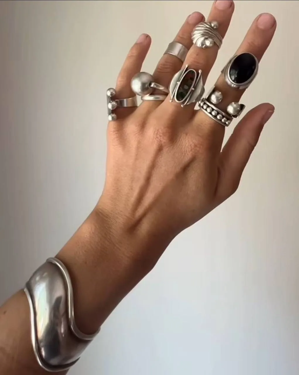 Не знаю как вы, а я считаю, что образы без украшений смотрятся скучно и незконченно. То ли дело с красивым колье или набором колец! К слову об украшениях, в этом сезоне особенно актуальны серебряные аксессуары.